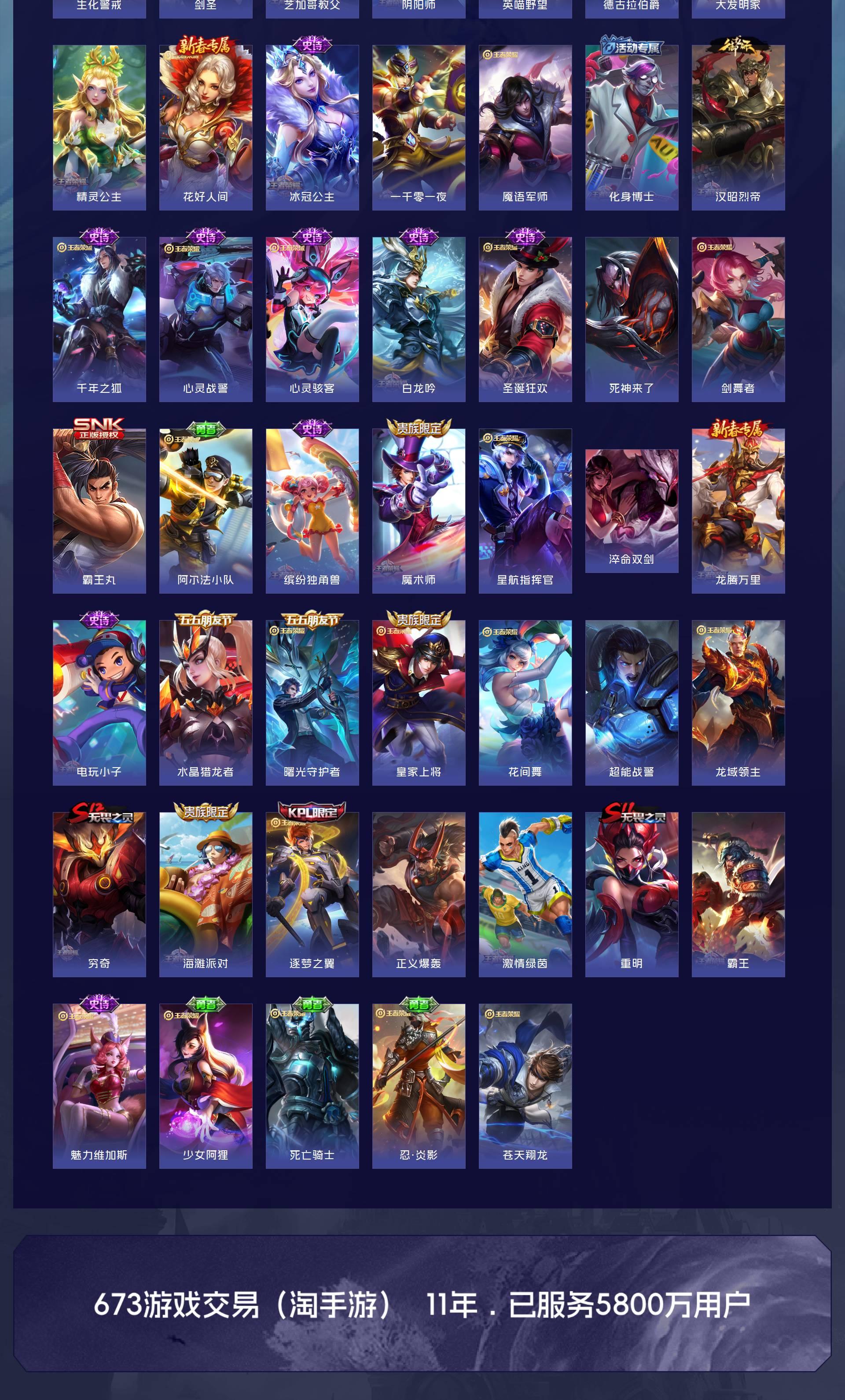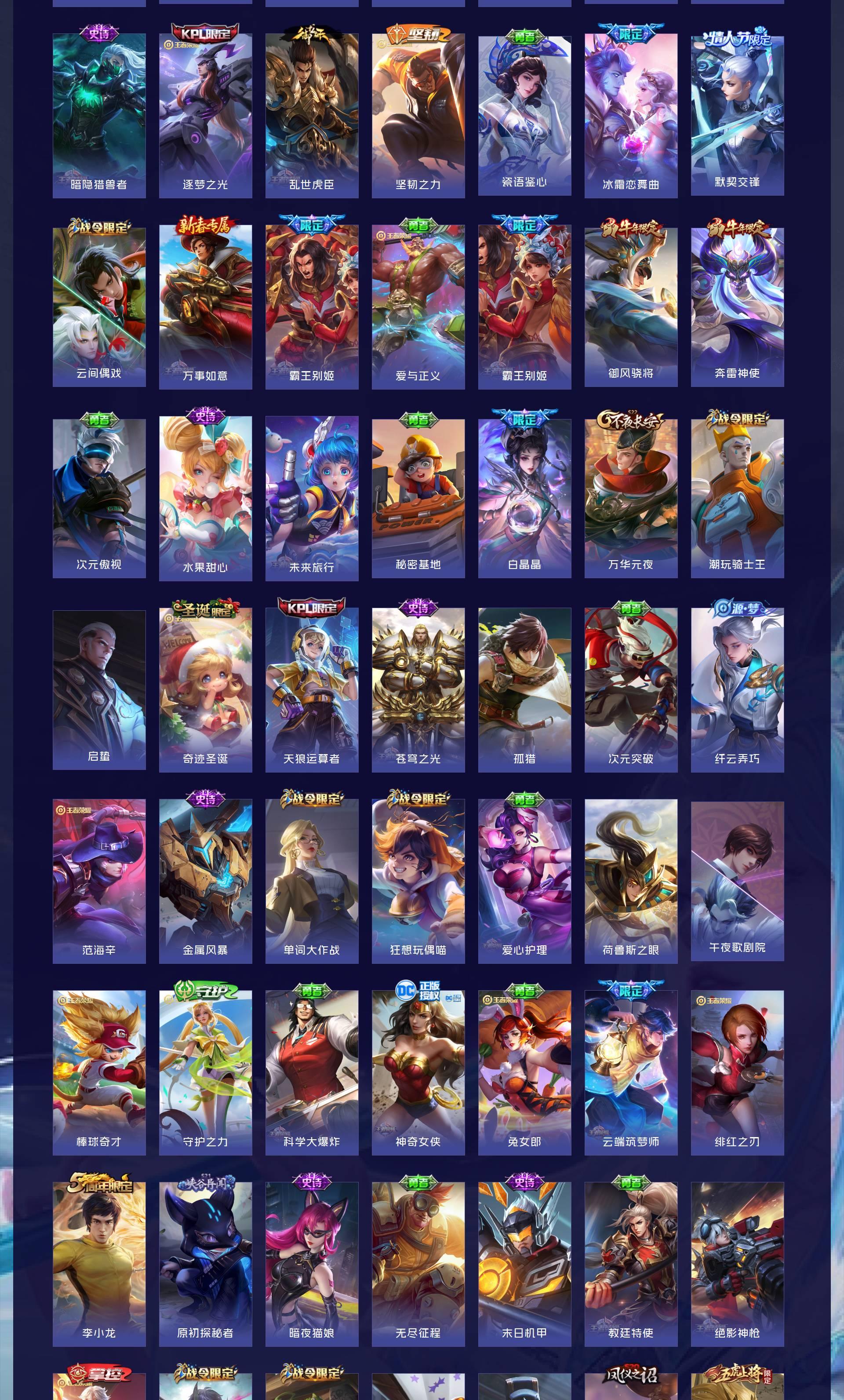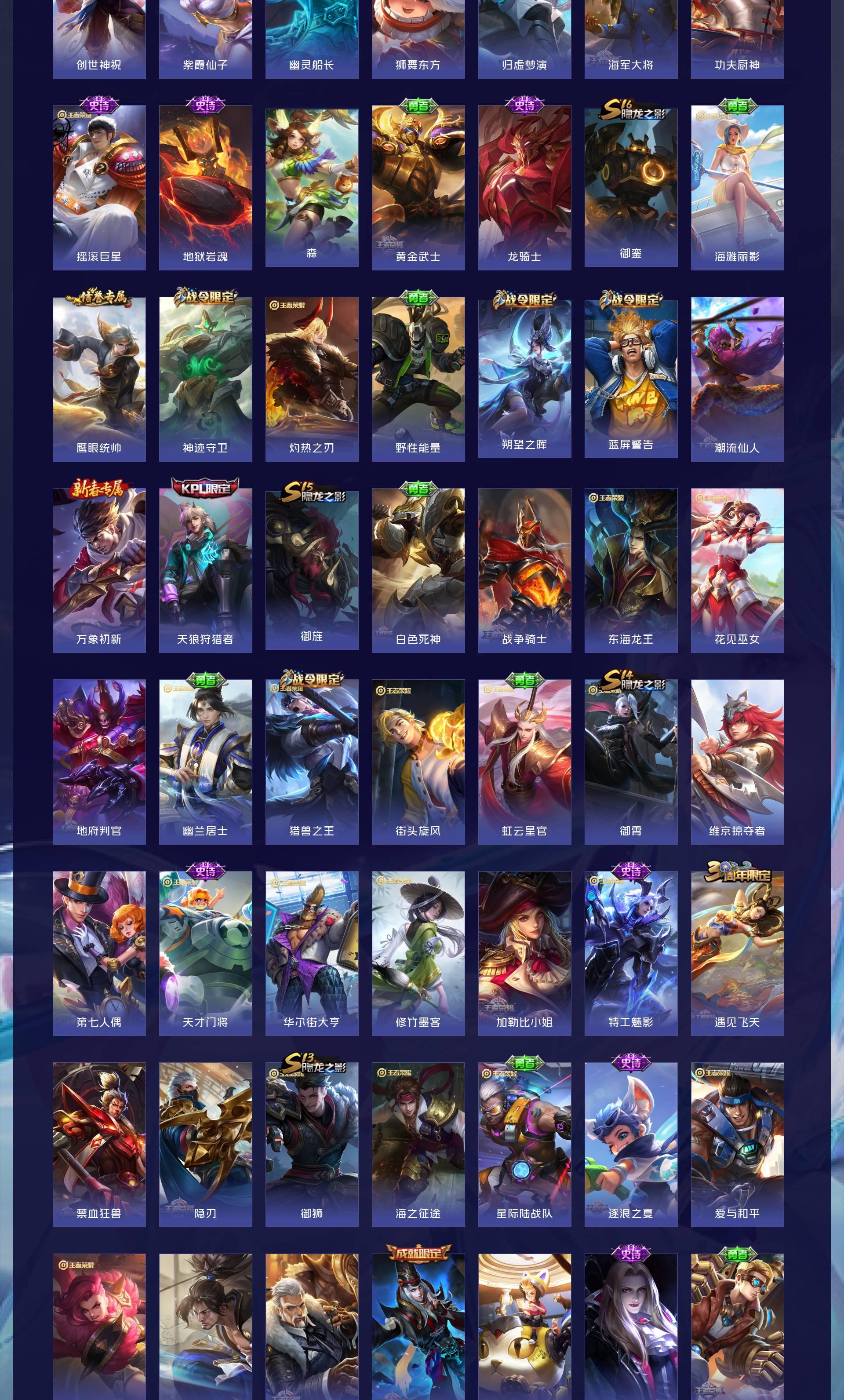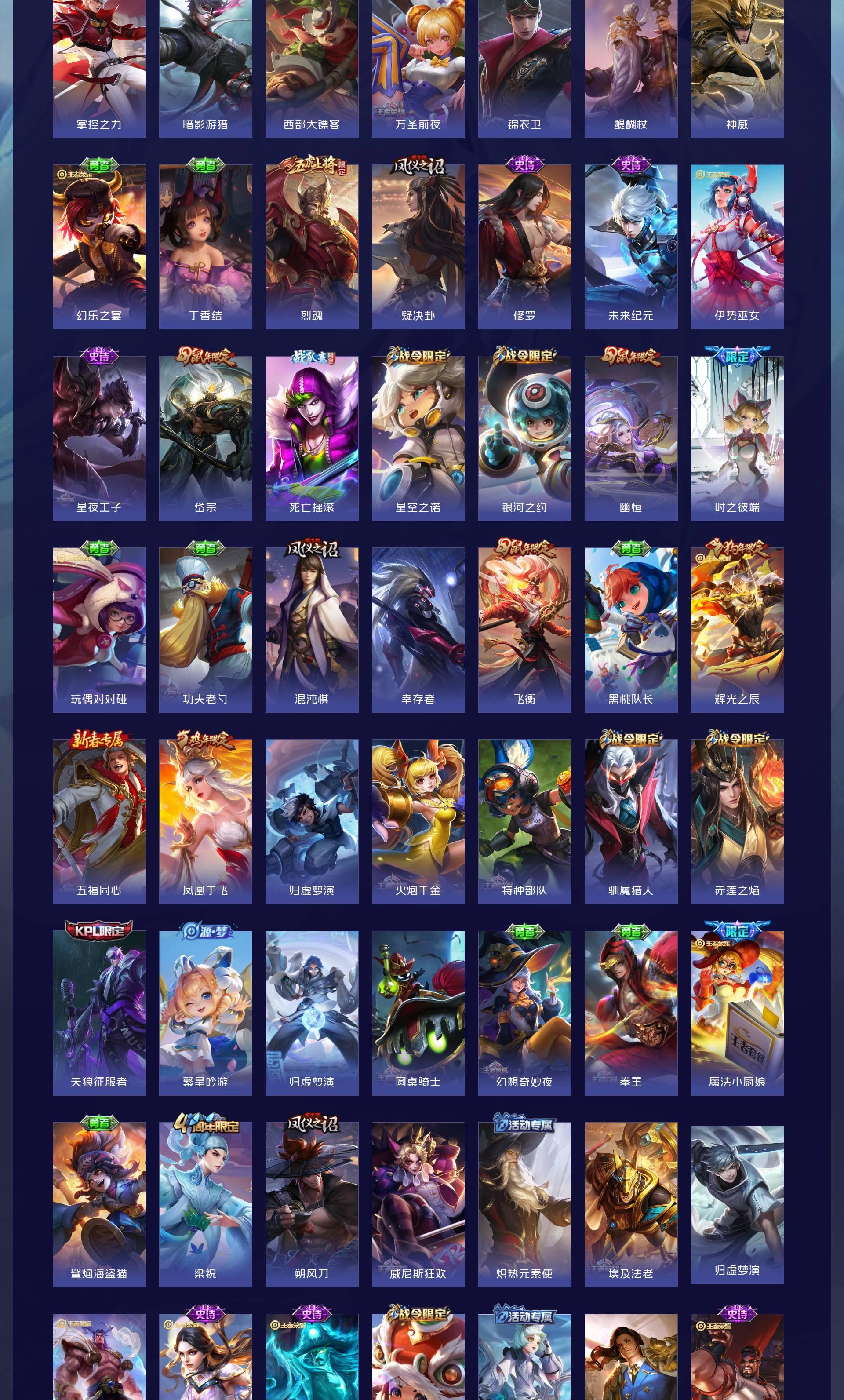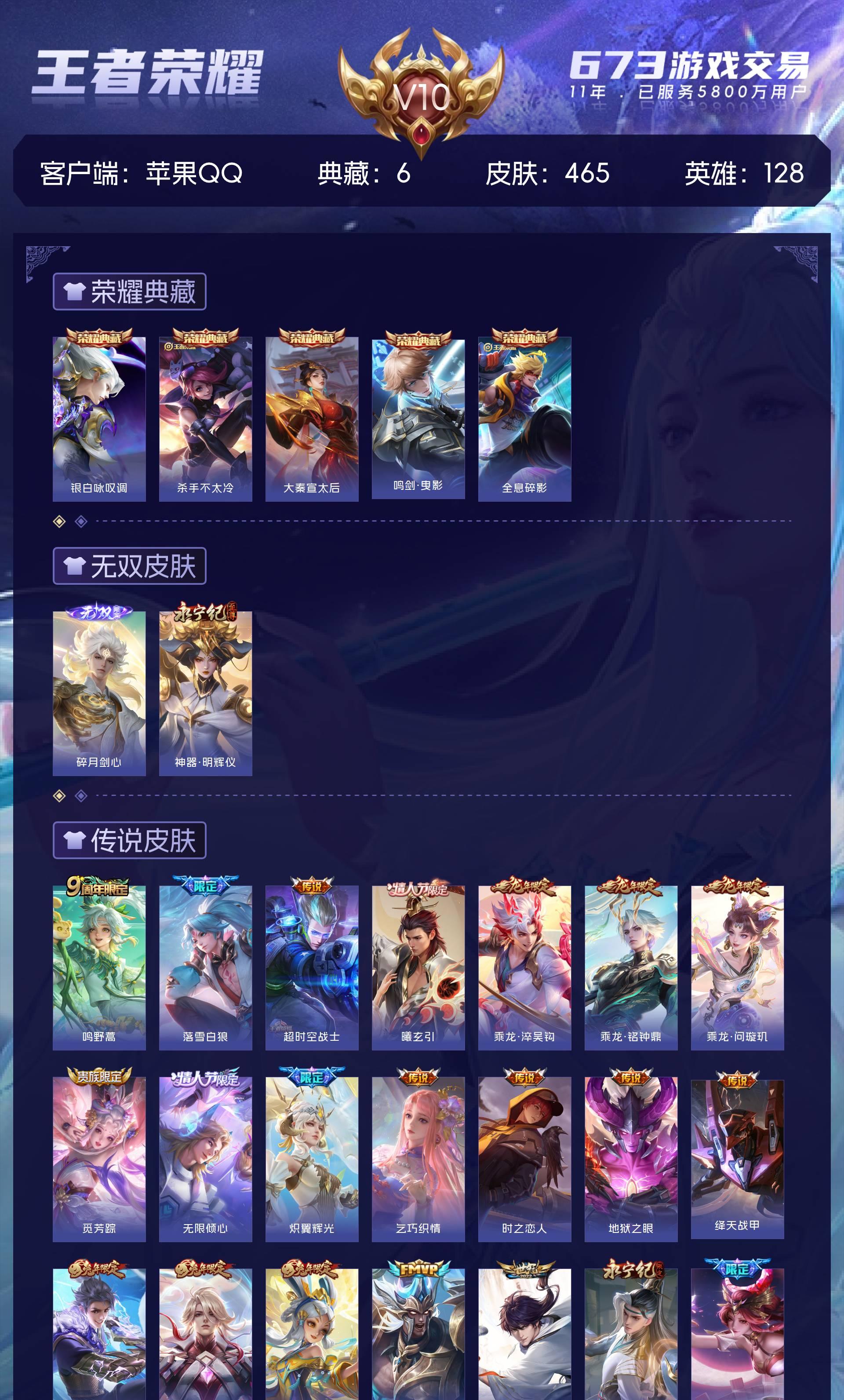 V10 皮肤465 英雄128 至尊星耀 荣耀典藏6 无双皮肤2 传说59 其他皮肤404