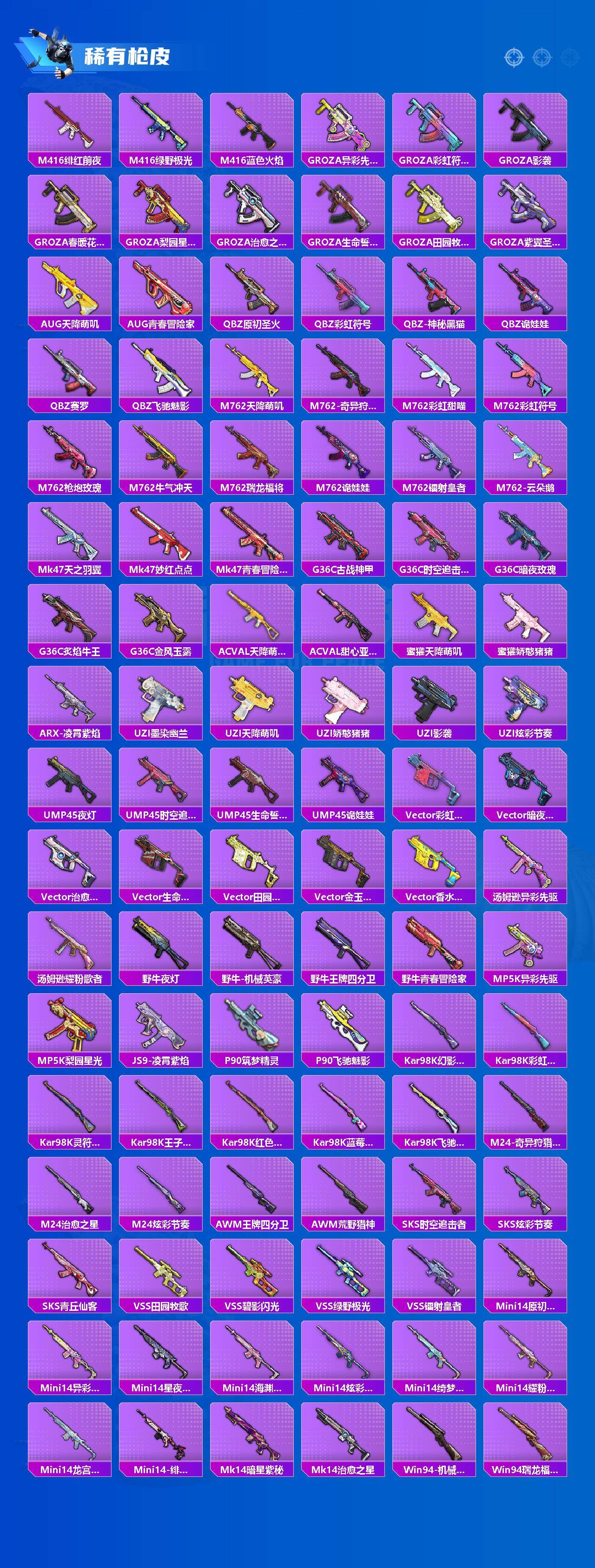 【粉色枪皮等级】:SCAR-L-青春物语(五级),M416-五爪金龙(五级),