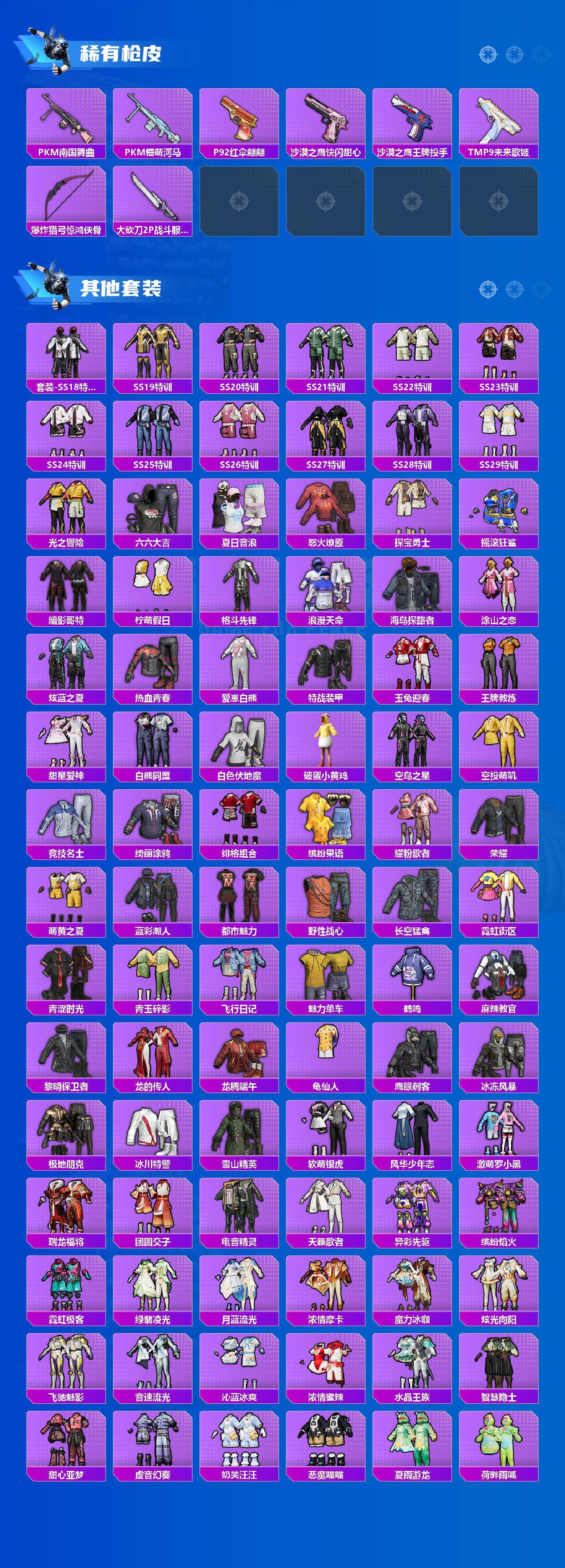 【HP1712】156套装/枪械5/装备256/载具1/战备155/王牌印记8/热力值69960/四级M16A4-垂柳戏鸭/七级SCAR-L-梦幻火箭/六级M762-甜心娃娃/七级UMP45-恐龙拽拽/四级AWM-橘柚倾心/粉装-梦幻火箭/粉装-童趣迷兔/粉装-缤纷油彩/套装-浪漫天命/套装-都市猎人/套装-胖达团团/套装-胖达圆圆/套装-龟仙人/套装-暗影哥特/角色-8号机/粉装-宝贝奶油派/粉装-天使彩虹糖/粉装-新星烈龙/粉装-冰霜白皇/粉装-彩虹鹿灵/粉装-山涧鹿灵/角色-洛天依/粉装-