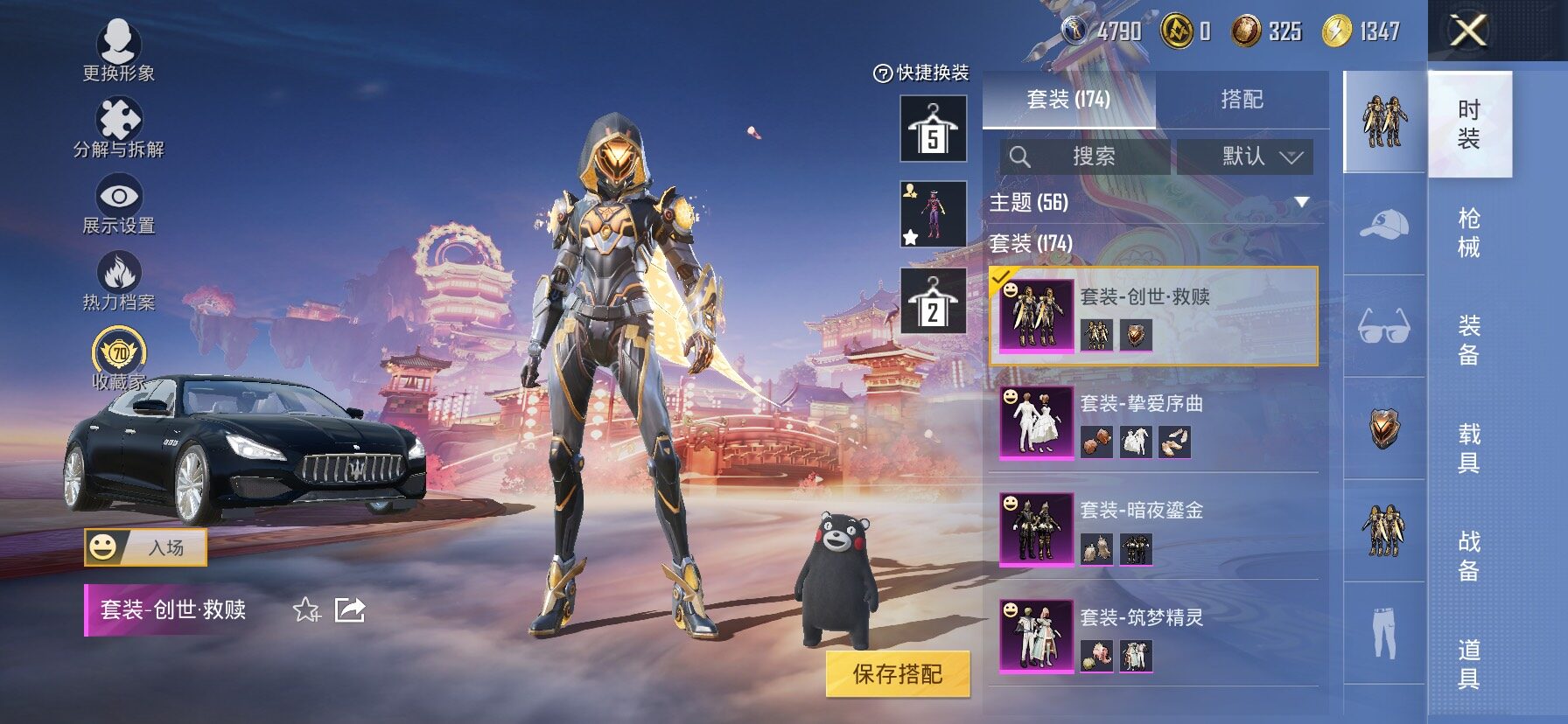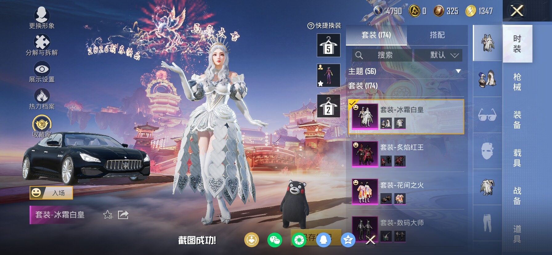 2稀有1载具11粉装7特效枪25热门174套装240枪皮 15印记 历史无敌战神