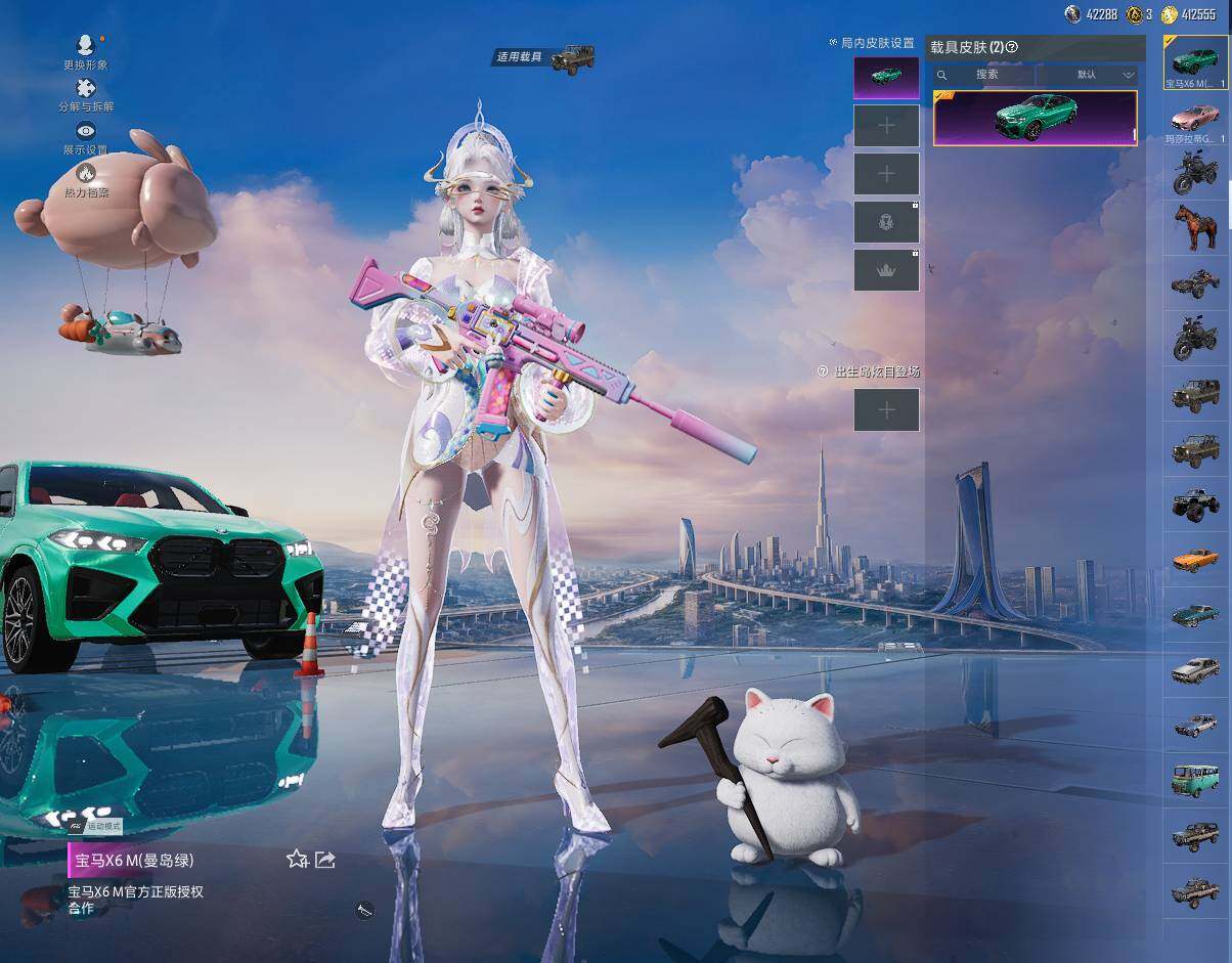 【粉色载具】:玛莎拉蒂Ghibli(粉),宝马X6 M(曼岛绿),僚机-萌兔起飞