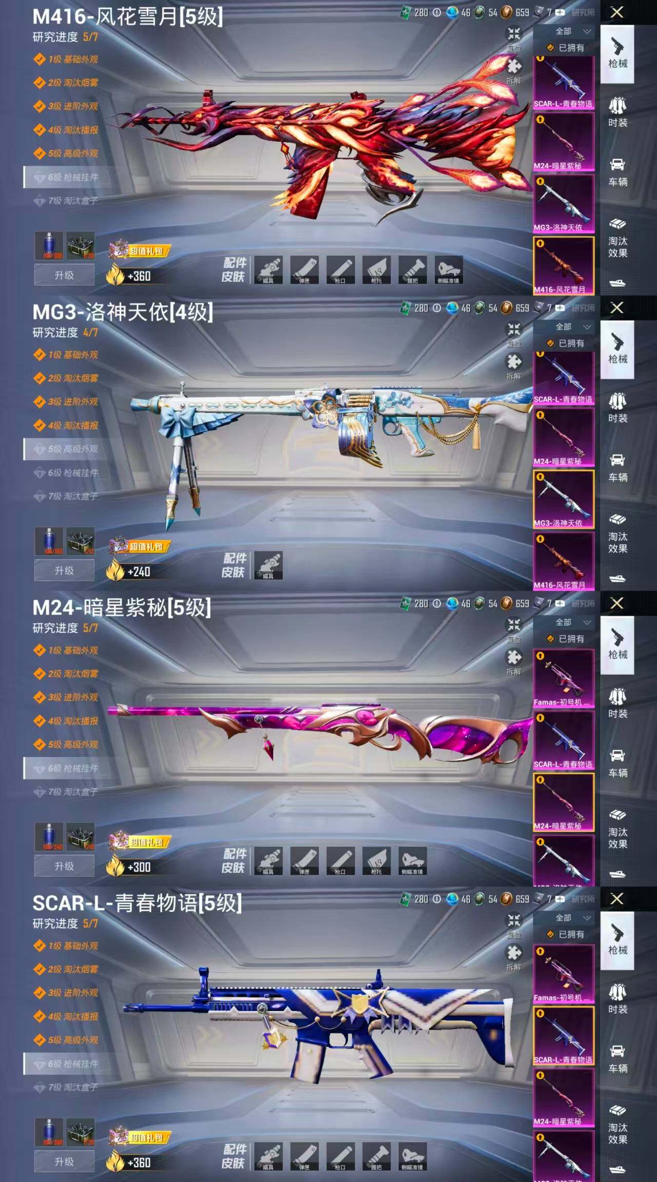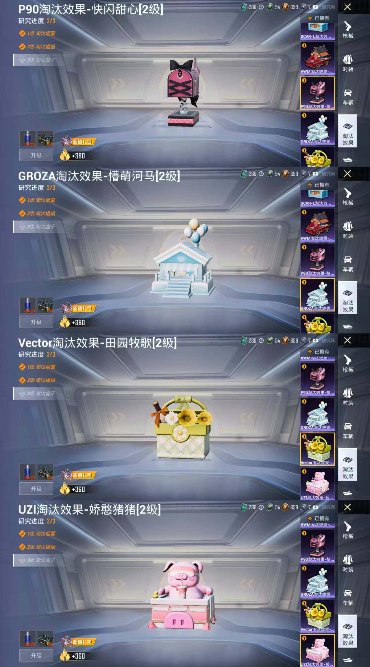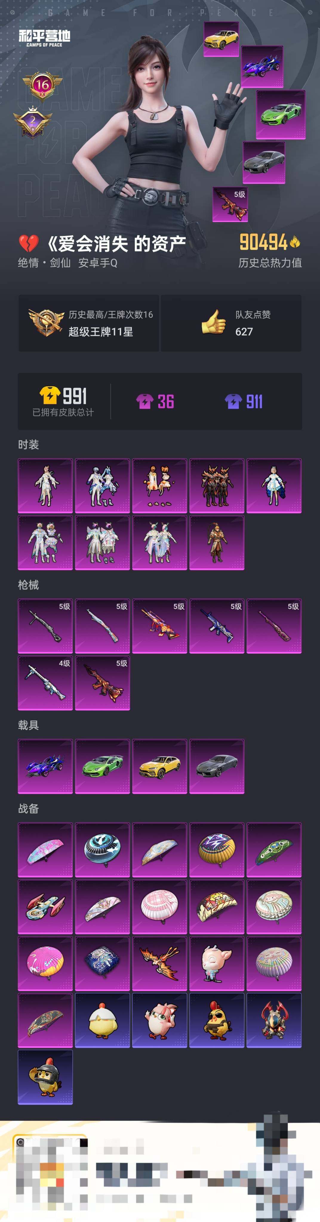 9粉装-7特效枪-4载具-3粉色飞行器-90494热力值-16王牌印记-185套装-266枪皮