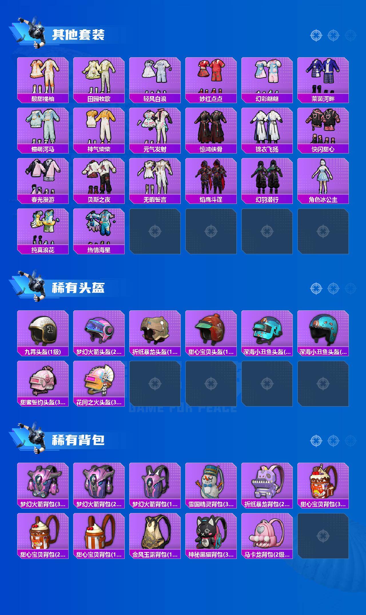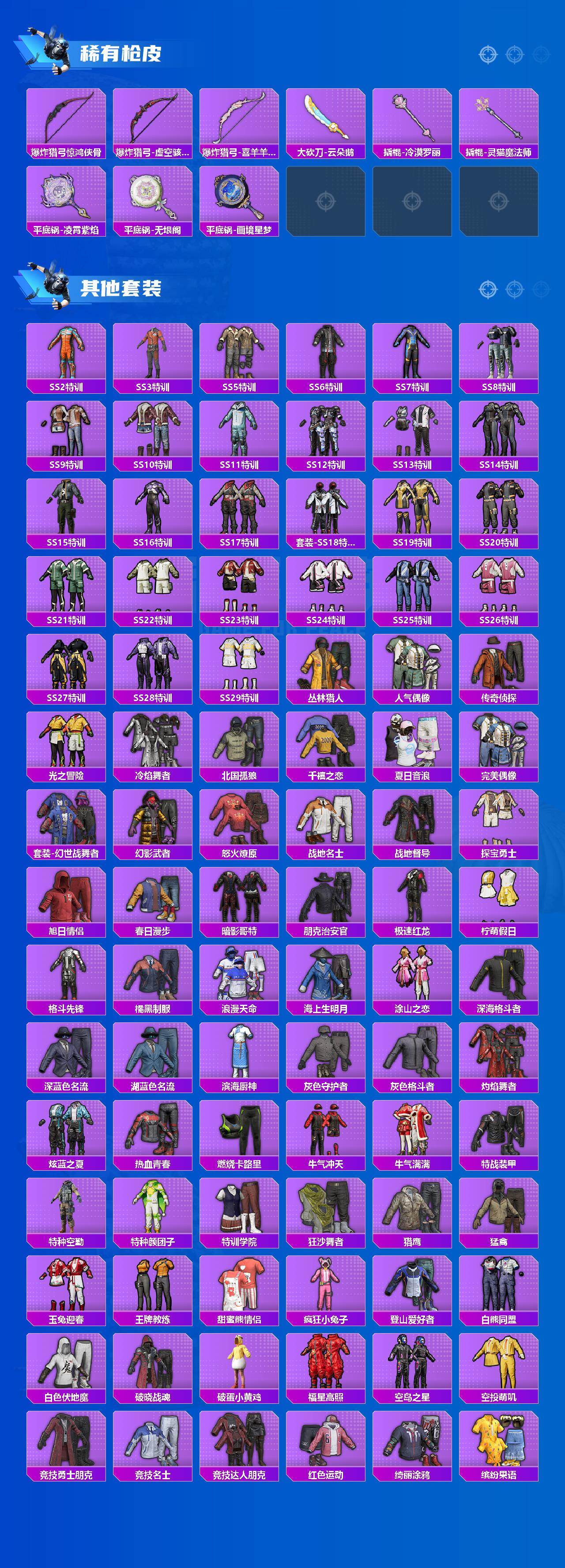 【热门品类】:粉装-梦幻火箭,套装-寒蝎幽灵,套装-浪漫天命,套装-都市猎人,套装-小丑鱼,套装-奇异狩猎者,角色-军刀雅典娜,套装-金羽特工,套装-龟仙人,套装-暗影哥特,套装-浪漫波比