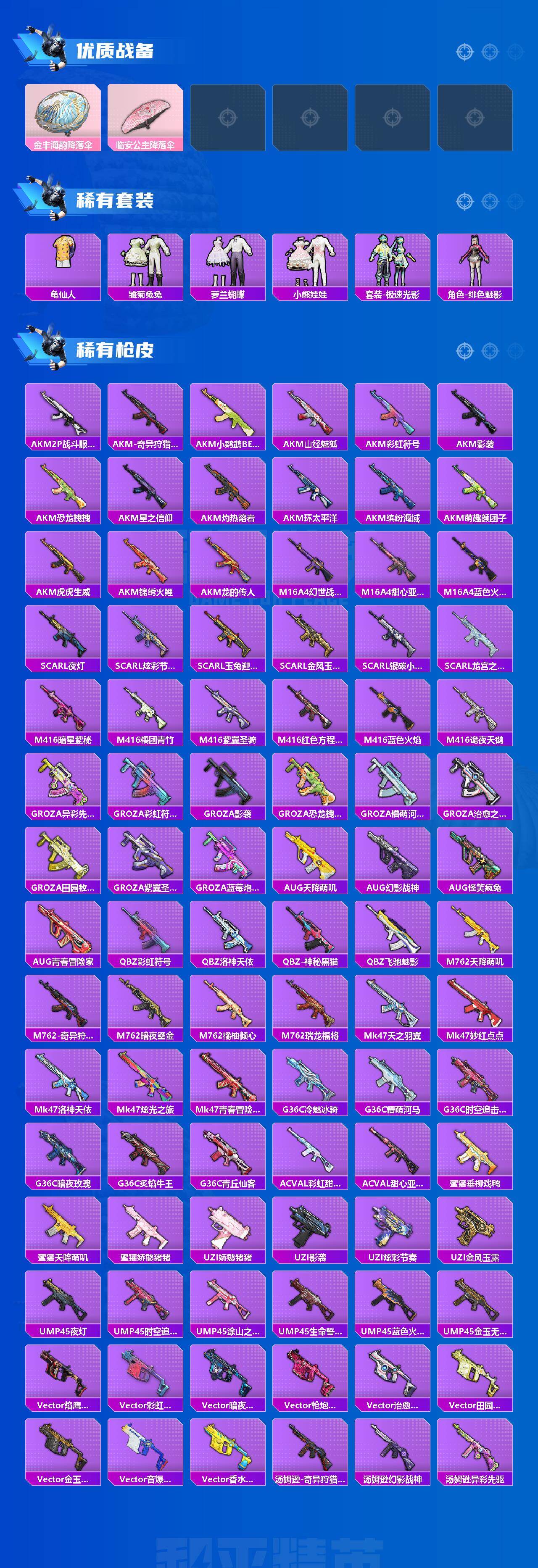 【HP1363】214套装/枪械10/装备449/载具2/战备212/王牌印记18/热力值110458/五级AKM-梦之光华/七级SCAR-L-梦幻火箭/六级M416-五爪金龙/七级UMP45-恐龙拽拽/五级Kar98K-巳巳如意/六级AWM-花间之火/五级DP-28-暗夜鎏金/五级DP-28-豹影疾电/七级MG3-洛神天依/五级PKM-天星战神/粉装-梦幻火箭/套装-浪漫天命/套装-赤蝎幽灵/套装-都市猎人/套装-深海小丑鱼/套装-小丑鱼/套装-奇异狩猎者/角色-军刀雅典娜/套装-动感兔斯基人
