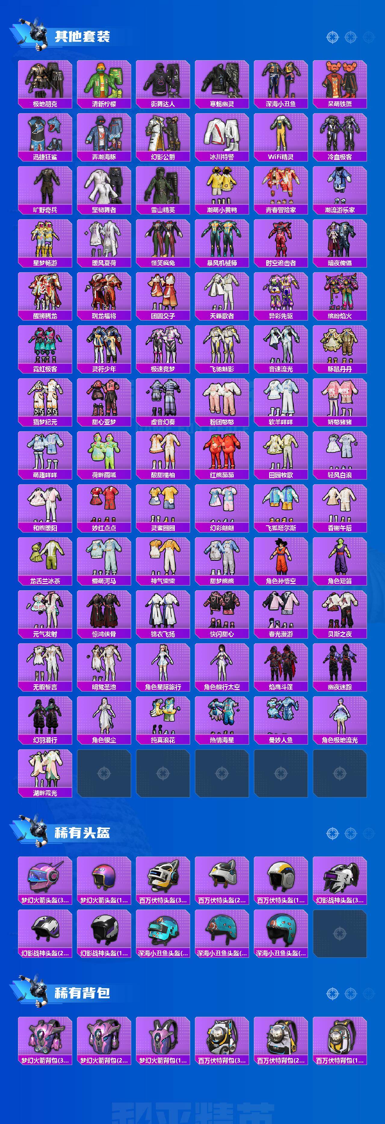 【热门品类】:粉装-怪诞乔克,粉装-梦幻火箭,粉装-缤纷油彩,套装-寒蝎幽灵,套装-浪漫天命,套装-都市猎人,套装-派对舞王,套装-深海小丑鱼,套装-小丑鱼,套装-奇异狩猎者,角色-军刀雅典娜,套装-胖达圆圆,套装-忍者信条,套装-动感兔斯基人偶服,套装-龟仙人,套装-潮萌小黄鸭,套装-红熊茄茄