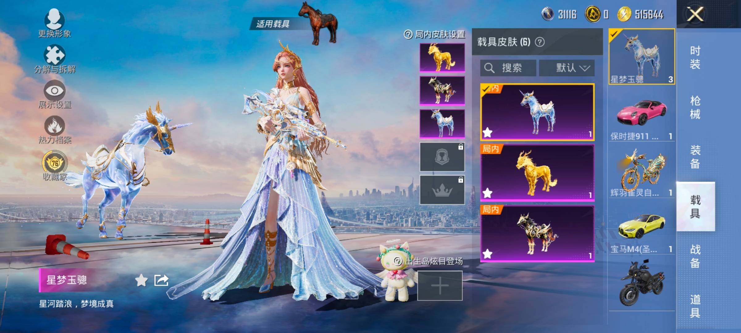 【6载具】 保时捷911敞篷版(星珀红) 宝马M4(圣保罗黄) 护世瑞兽 黑曜夜骑 星梦玉骢 辉羽雀灵自行车