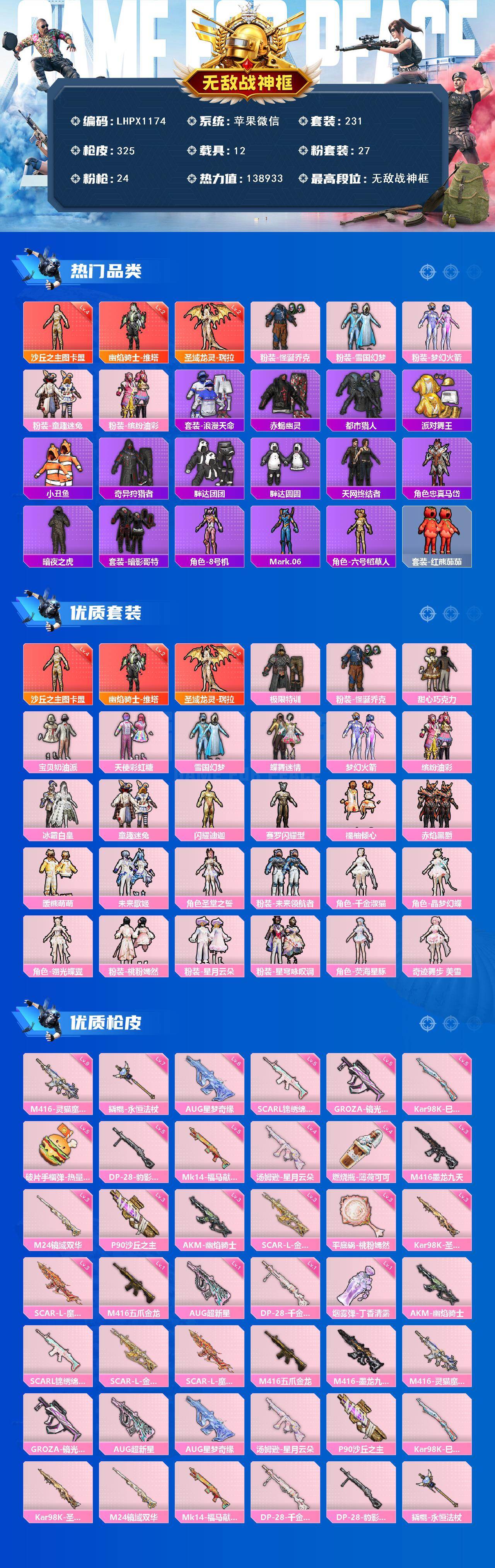 6级aug 满级m4灵猫 【特价出售/店主推荐】苹果 微信-无敌战神框-3神装-27粉装-24特效枪-12载具-17粉色飞行器-138933热力值-11王牌印记-231套装-325枪皮