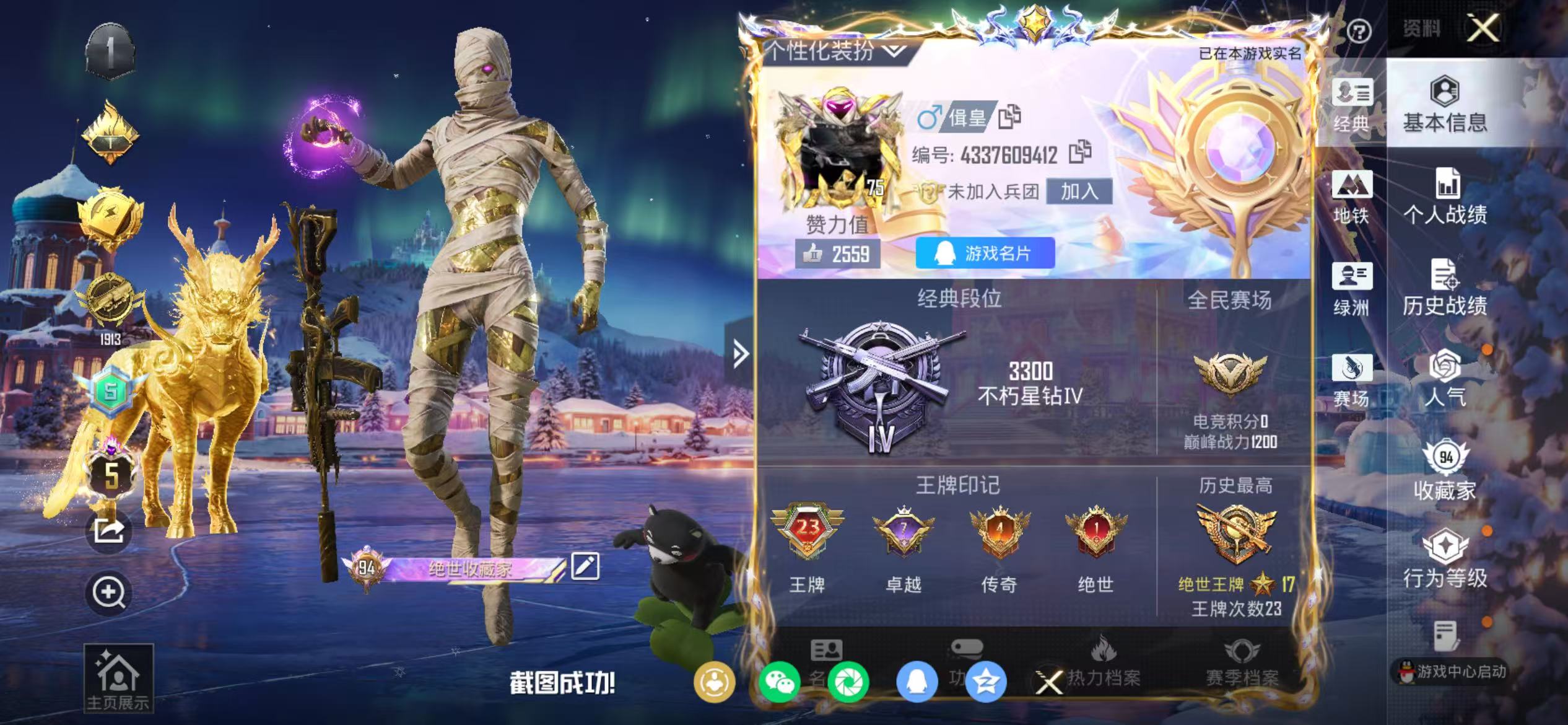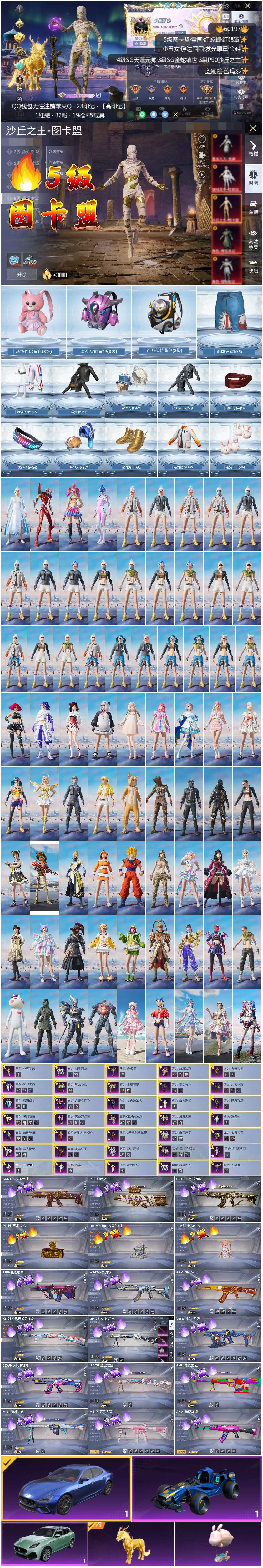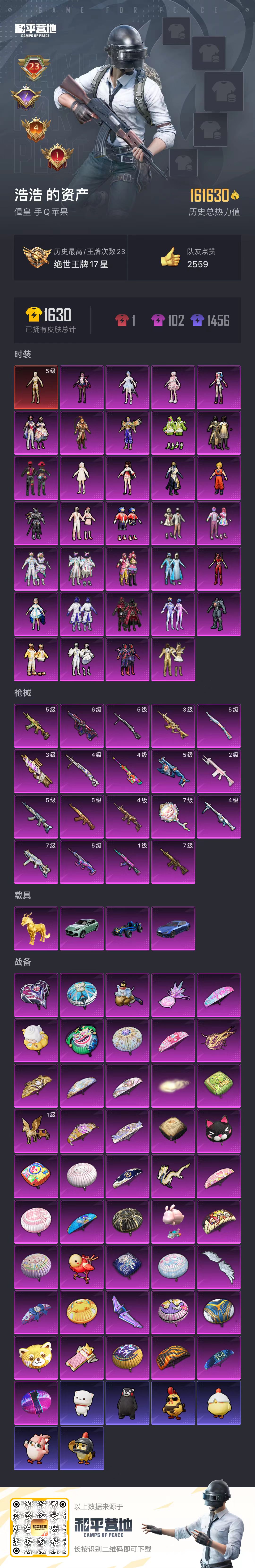 23王牌印记-1红装-33粉装-19特效枪-4载具-热力值-309套装-452枪皮-7卓越印记-4传奇印记