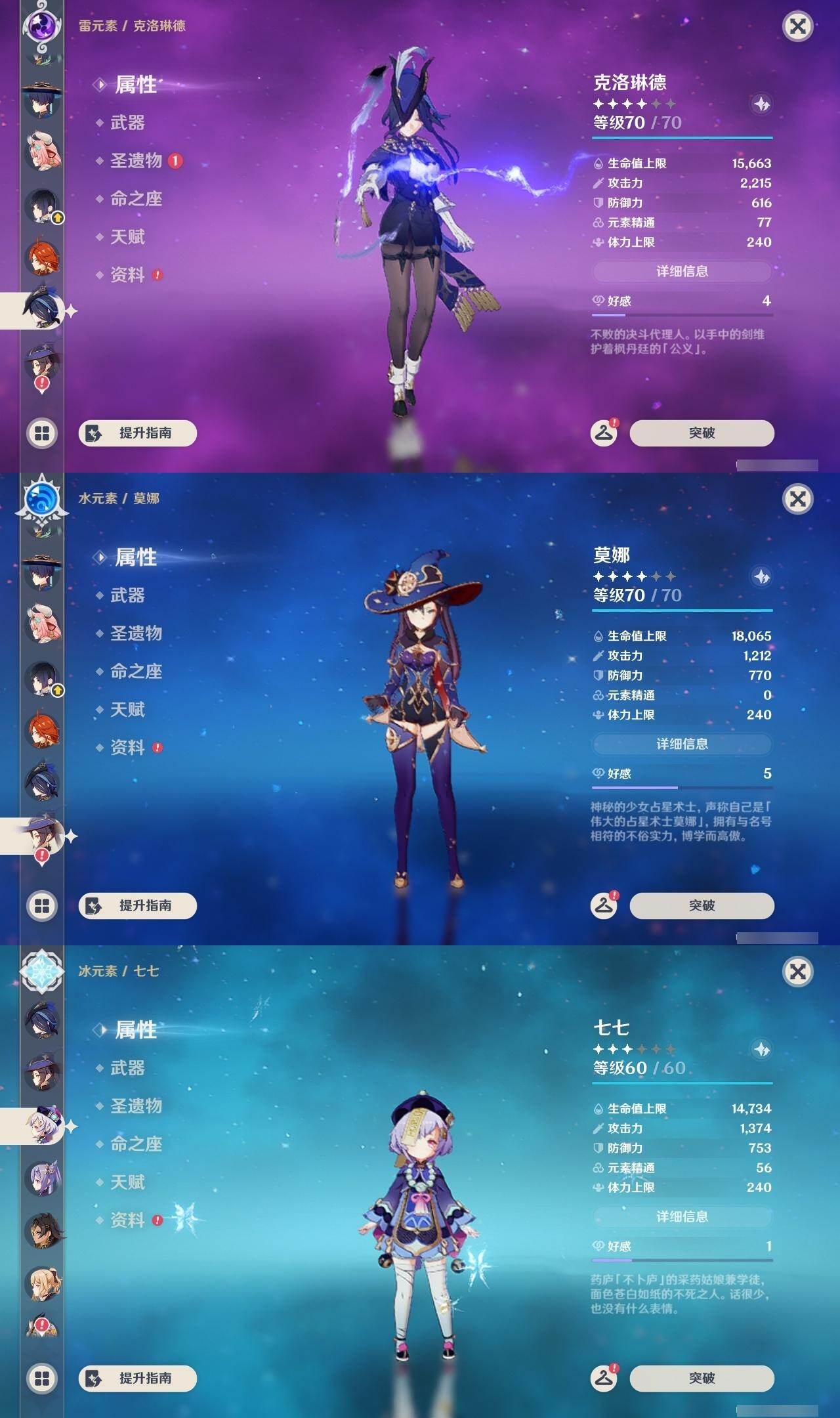 57级/31黄/女主/19个五星角色/6个五星武器0命克洛琳德,0命阿蕾奇诺