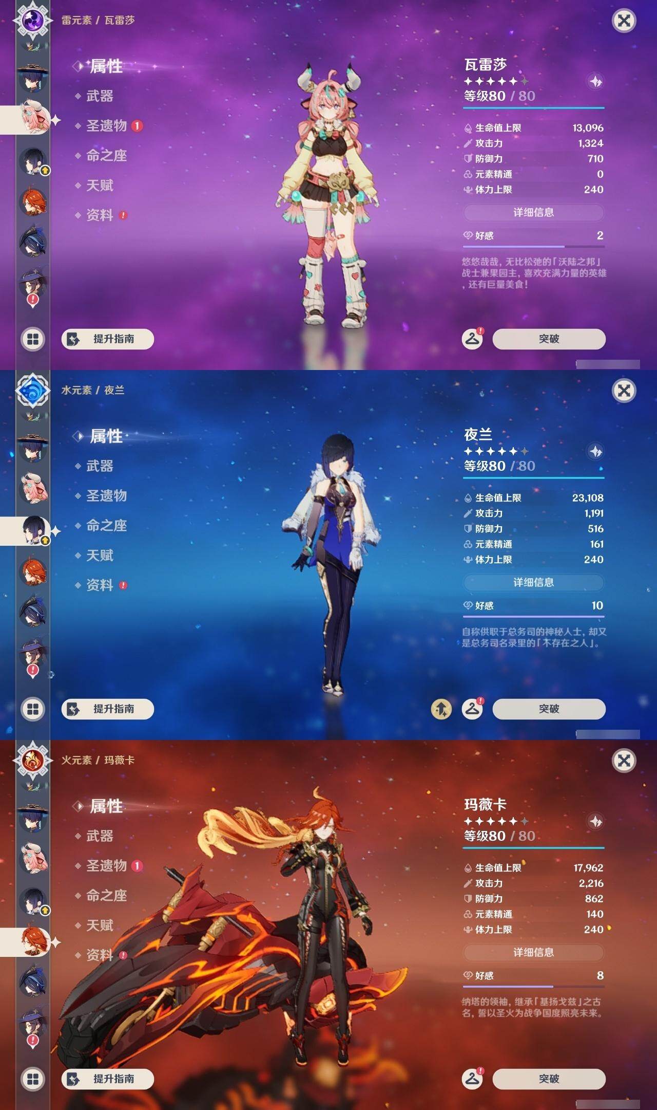 57级/31黄/女主/19个五星角色/6个五星武器