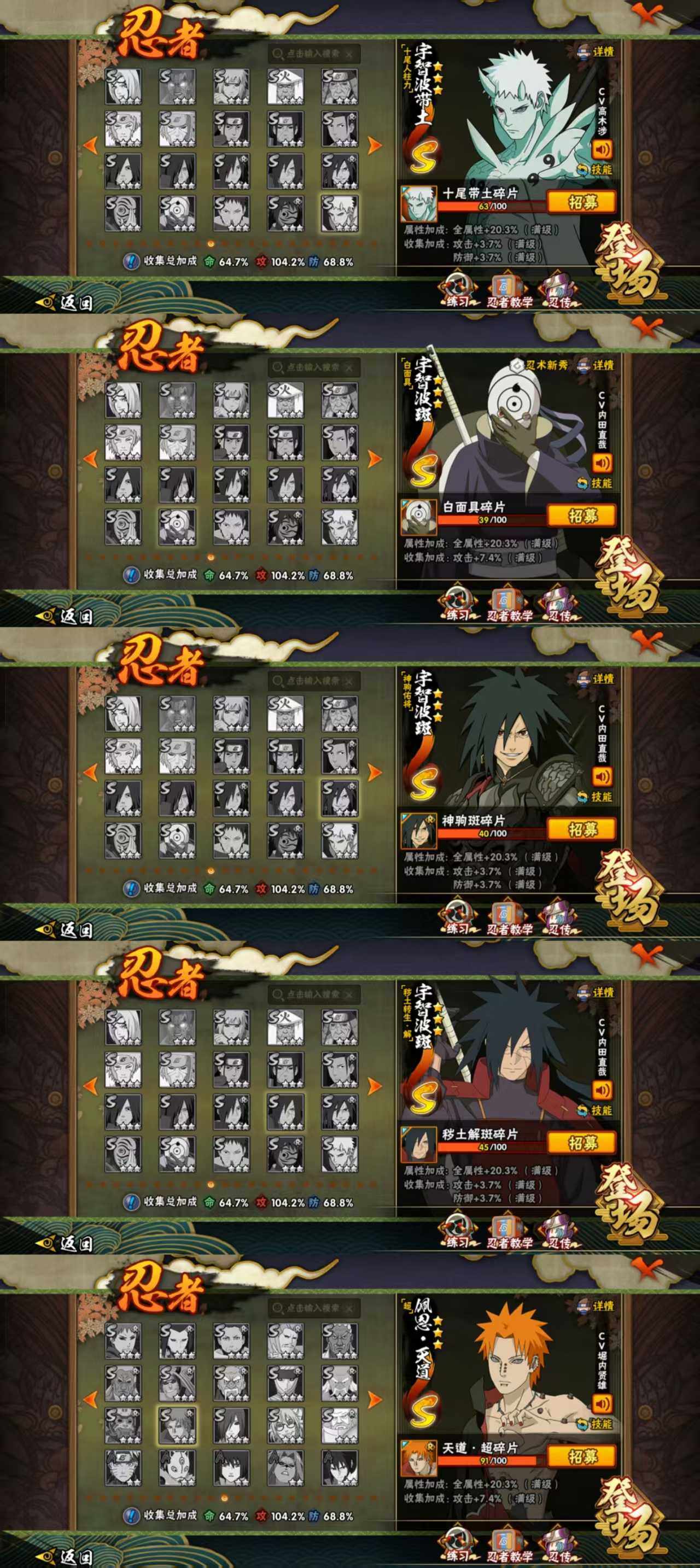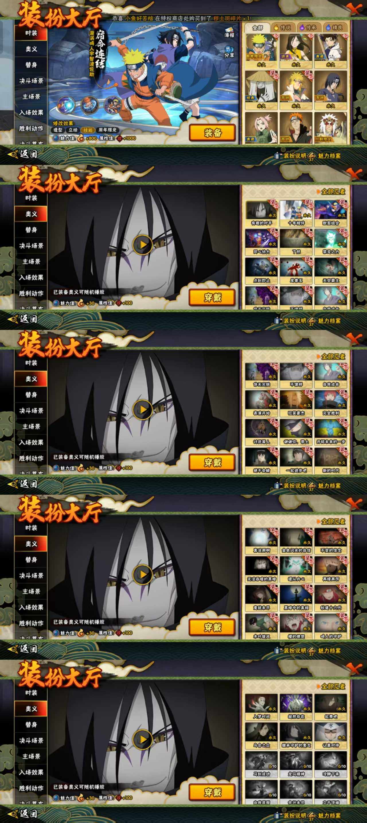p54,804万战贵10,15s忍36a忍,熊猫忍战艾最终章舍人第六尾鸣人九喇嘛水门须佐卡卡西须佐止水五影斑博人传桃式须佐能乎鼬秽土再不斩鬼鲛飞段药师兜仙人巳月等,漩涡鸣人·宇智波佐助(3星),漩涡鸣人「暴怒·第六尾」(3星),旗木卡卡西「须佐能乎」(3星),自来也(3星),自来也「传说中的三忍」(3星),波风水门(3星),波风水门「九喇嘛连结」(3星),宇智波鼬「须佐能乎」(3星),宇智波鼬「