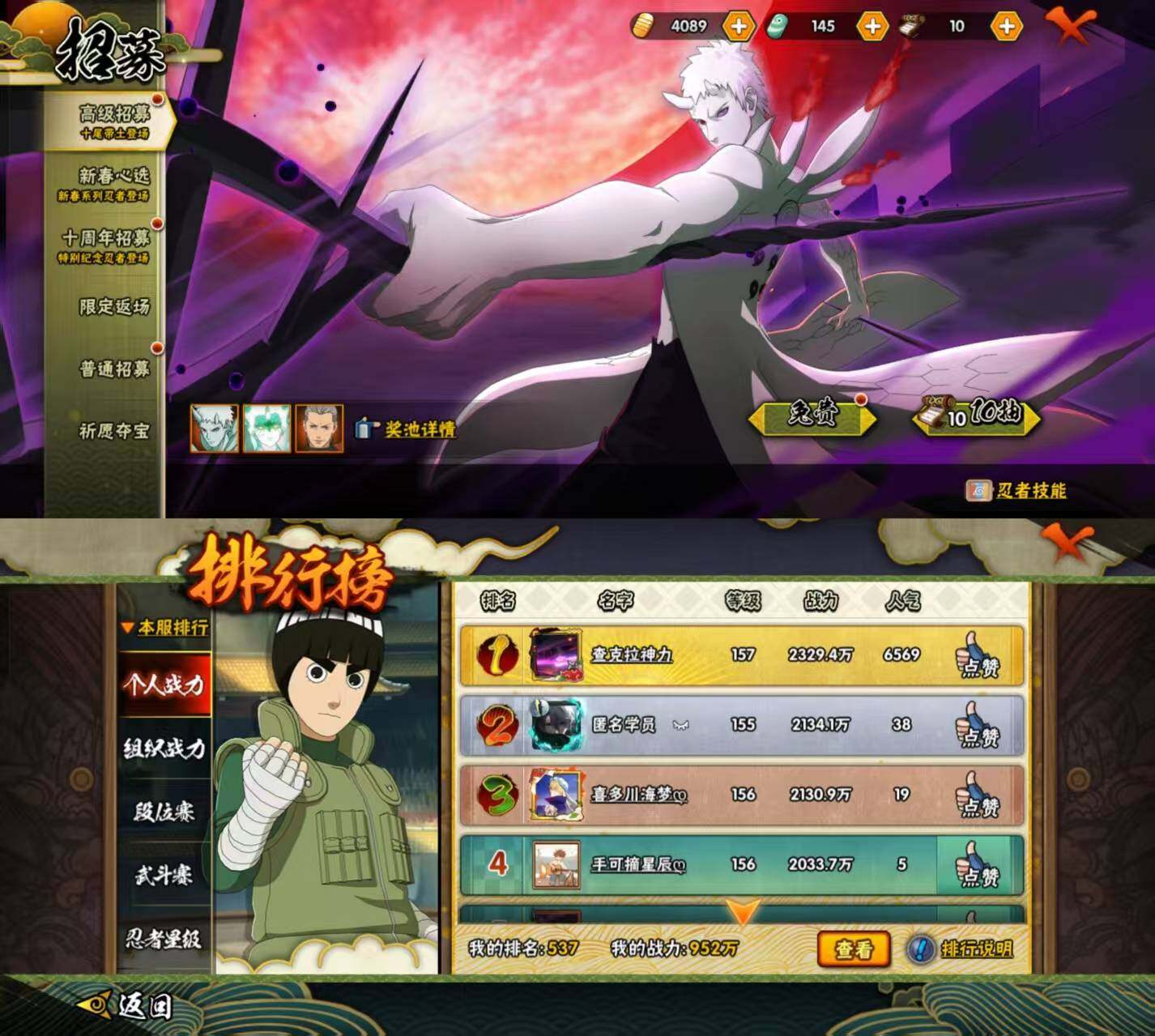 p56,952万战贵10,15s忍35a忍,暴怒带土红白面具忍战艾秽土解斑须佐止水创立柱间须佐卡卡西博人传桃式永恒佐助漂泊小南土台飞段夏日鼬等,漩涡鸣人·宇智波佐助(3星),宇智波佐助「永恒万花筒」(3星),旗木卡卡西「须佐能乎」(3星),自来也「舞之豪杰」(3星),纲手(3星),波风水门(3星),千手柱间「木叶创立」(3星),宇智波斑「秽土转生·解」(3星),宇智波鼬「须佐能乎」(3星),宇智