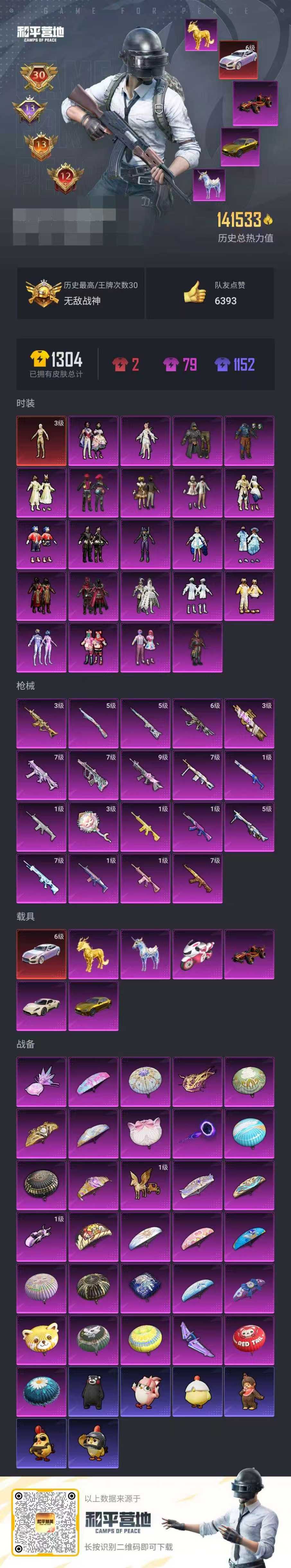 30王牌印记-有战神框-1红装-23粉装-19特效枪-7载具-热力值-284套装-314枪皮-13卓越印记-13传奇印记