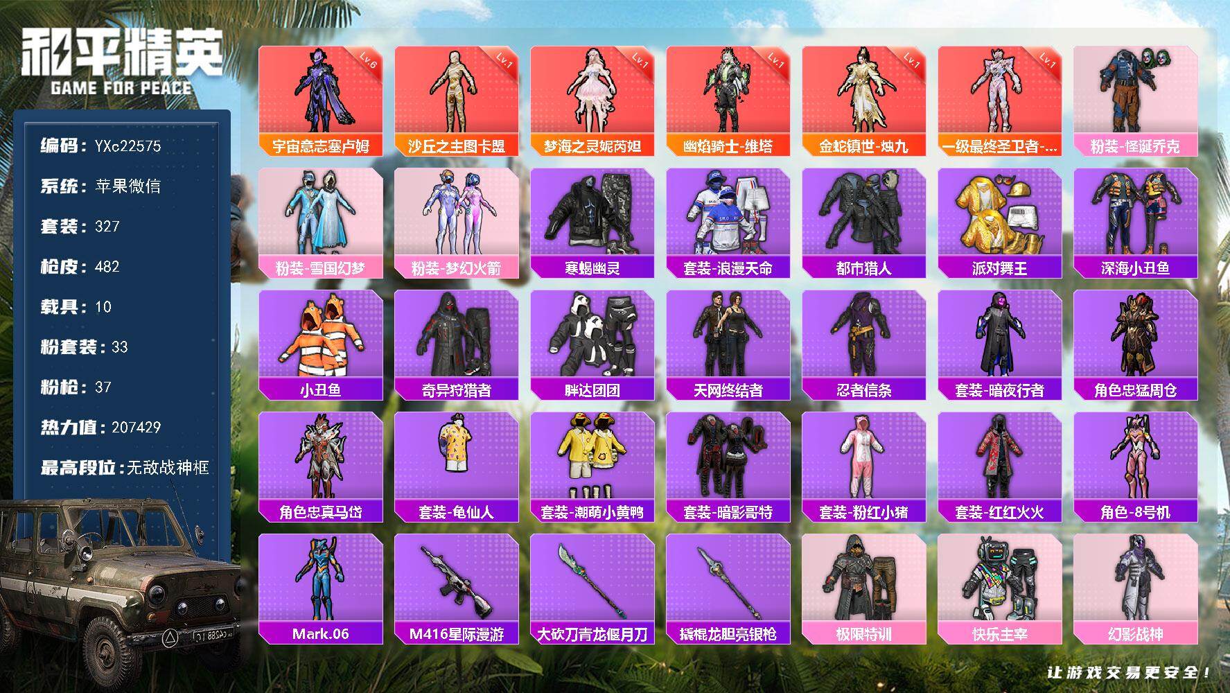安卓V-6红装9稀有11载具33粉装37特效枪42热门327套装482枪皮 19印记 历史无敌战神