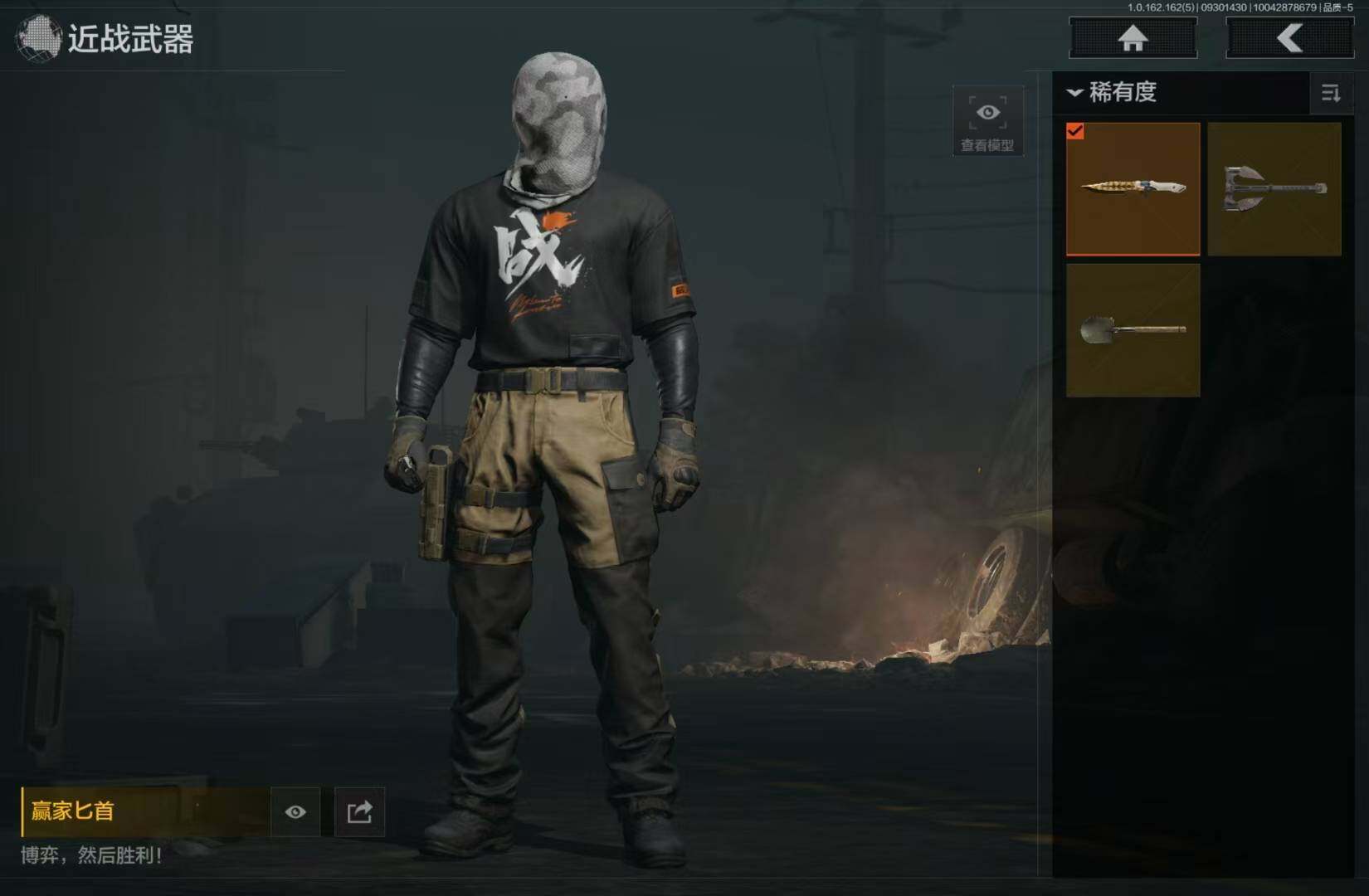 【近战武器】:工兵铲,赢家匕首,不屈烈怒