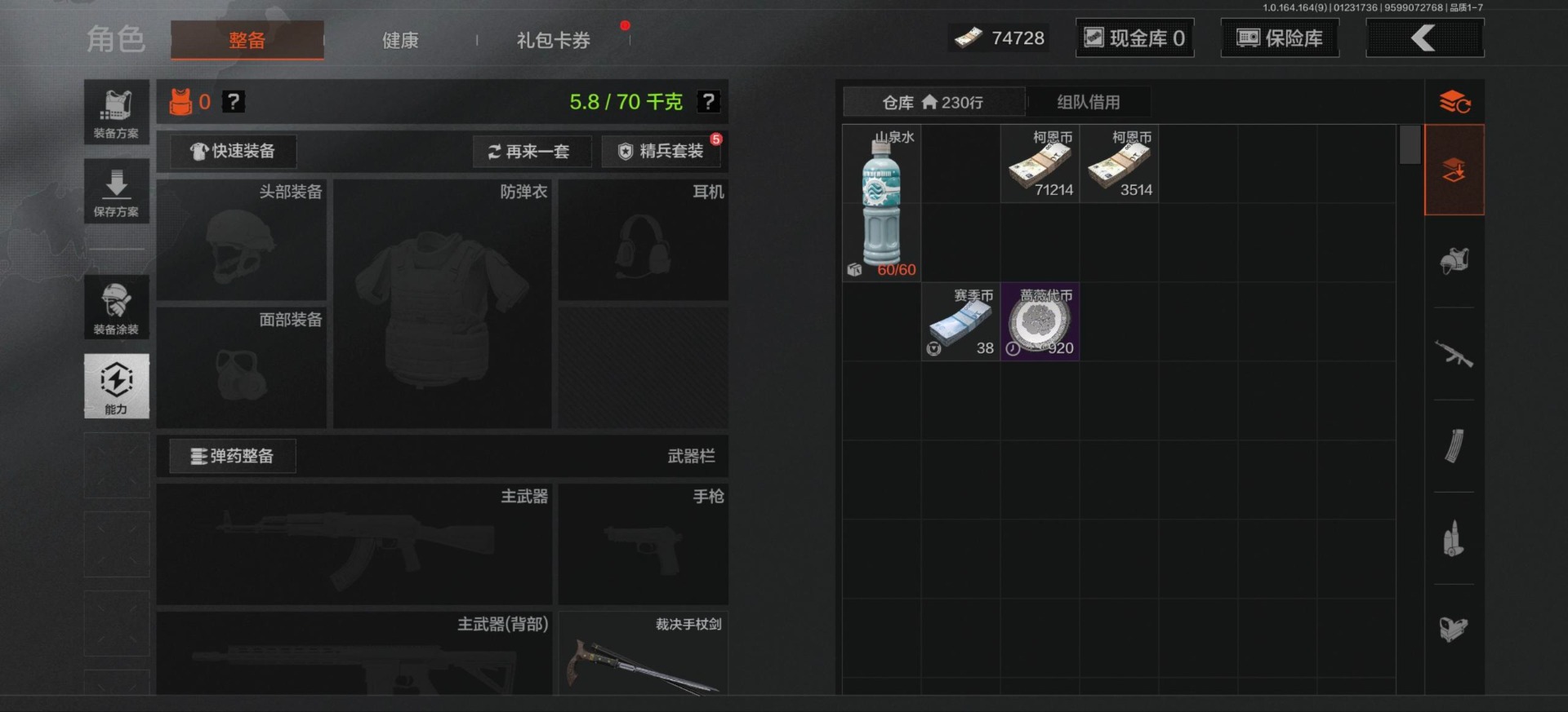 库存价值166.9 4近战武器 4金枪皮