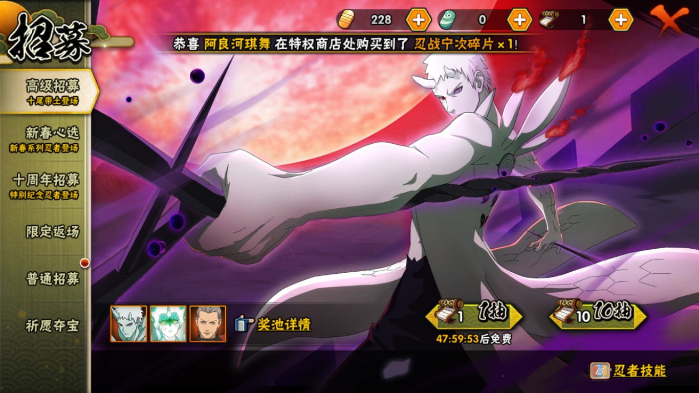 (可转苹果)158w战力十尾3s+忍战卡卡西7a