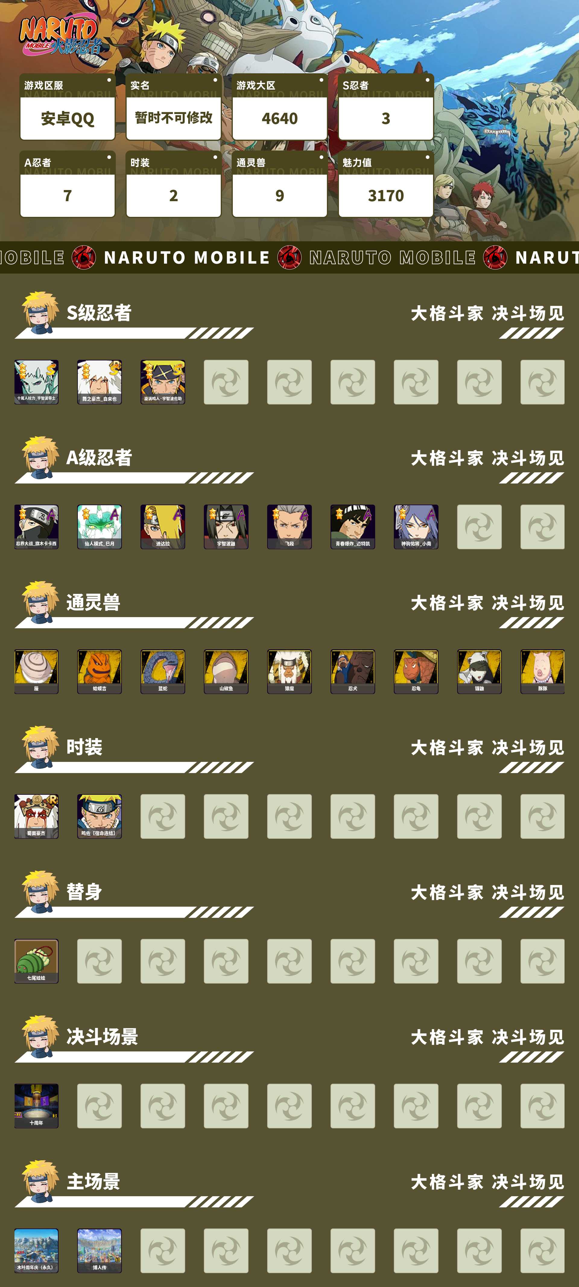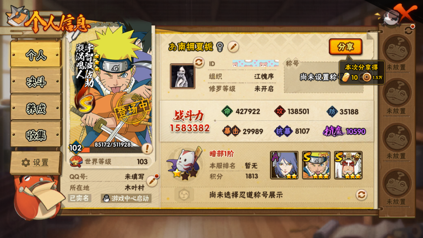 (可转苹果)158w战力十尾3s+忍战卡卡西7a战力158账