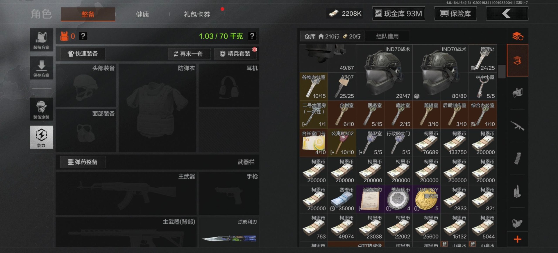 库存价值106.3 3近战武器 1金套装 4金枪皮