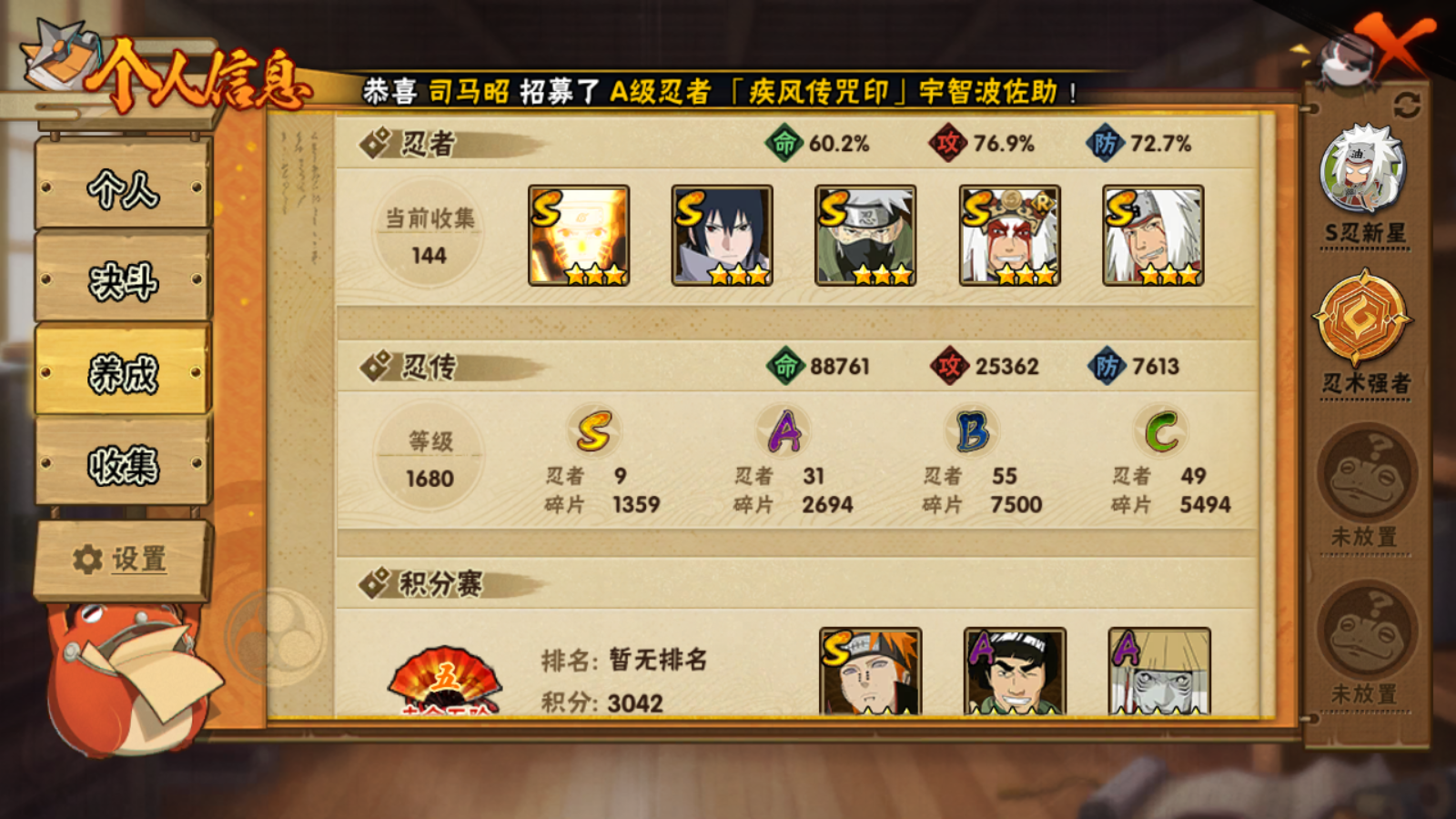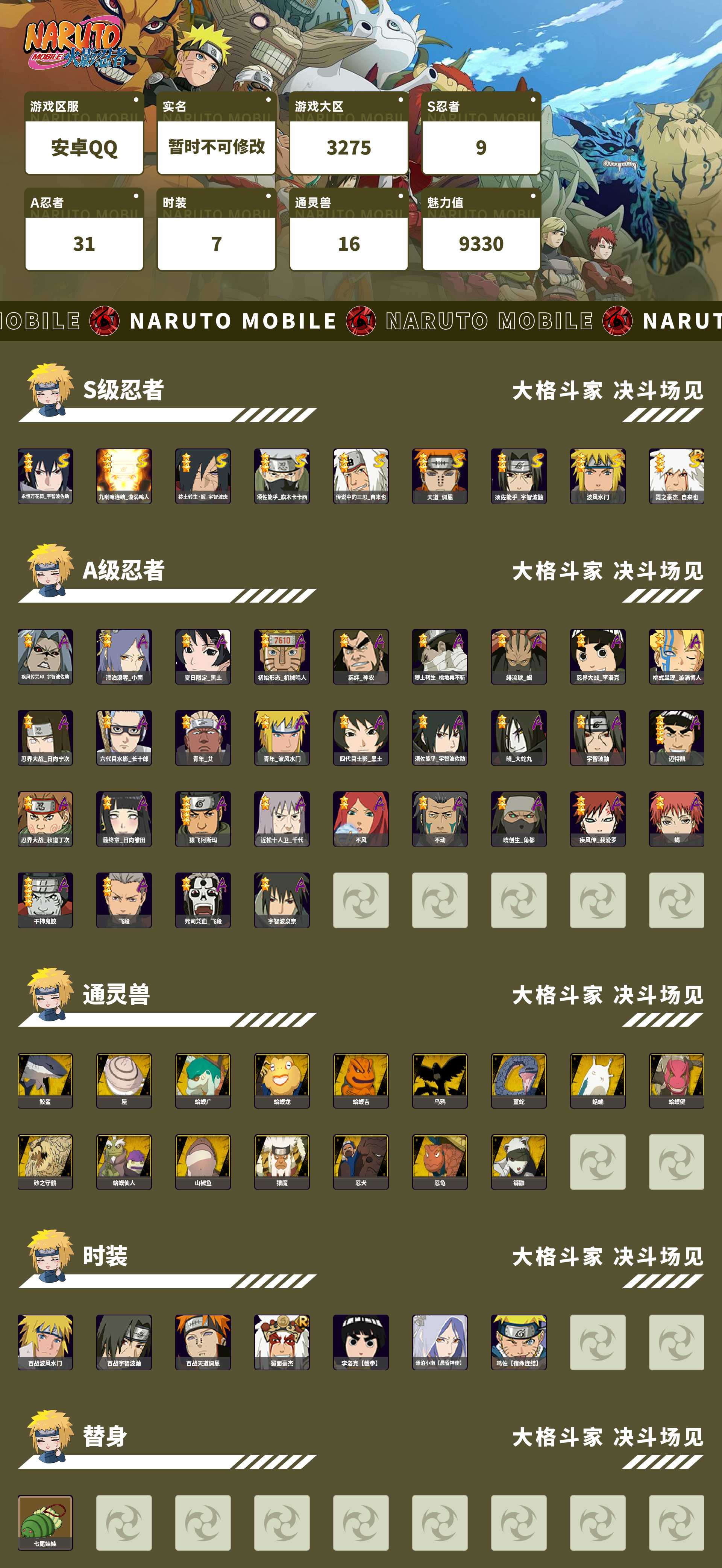 (可转苹果)685W战力黄猿紫狗/9S+298直购A咒印佐助、2个198直购A/31A+88十周年鸣佐、85忍战艾碎片