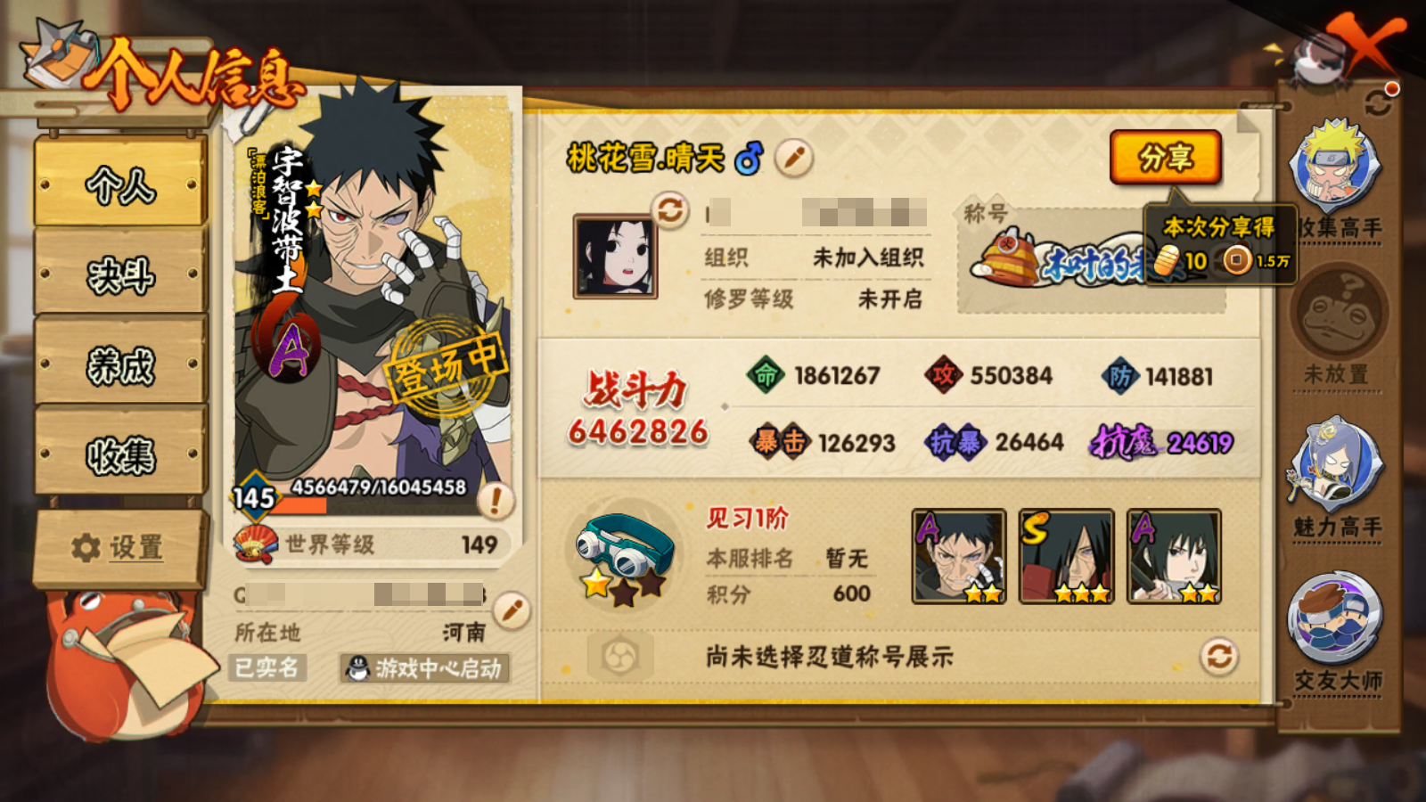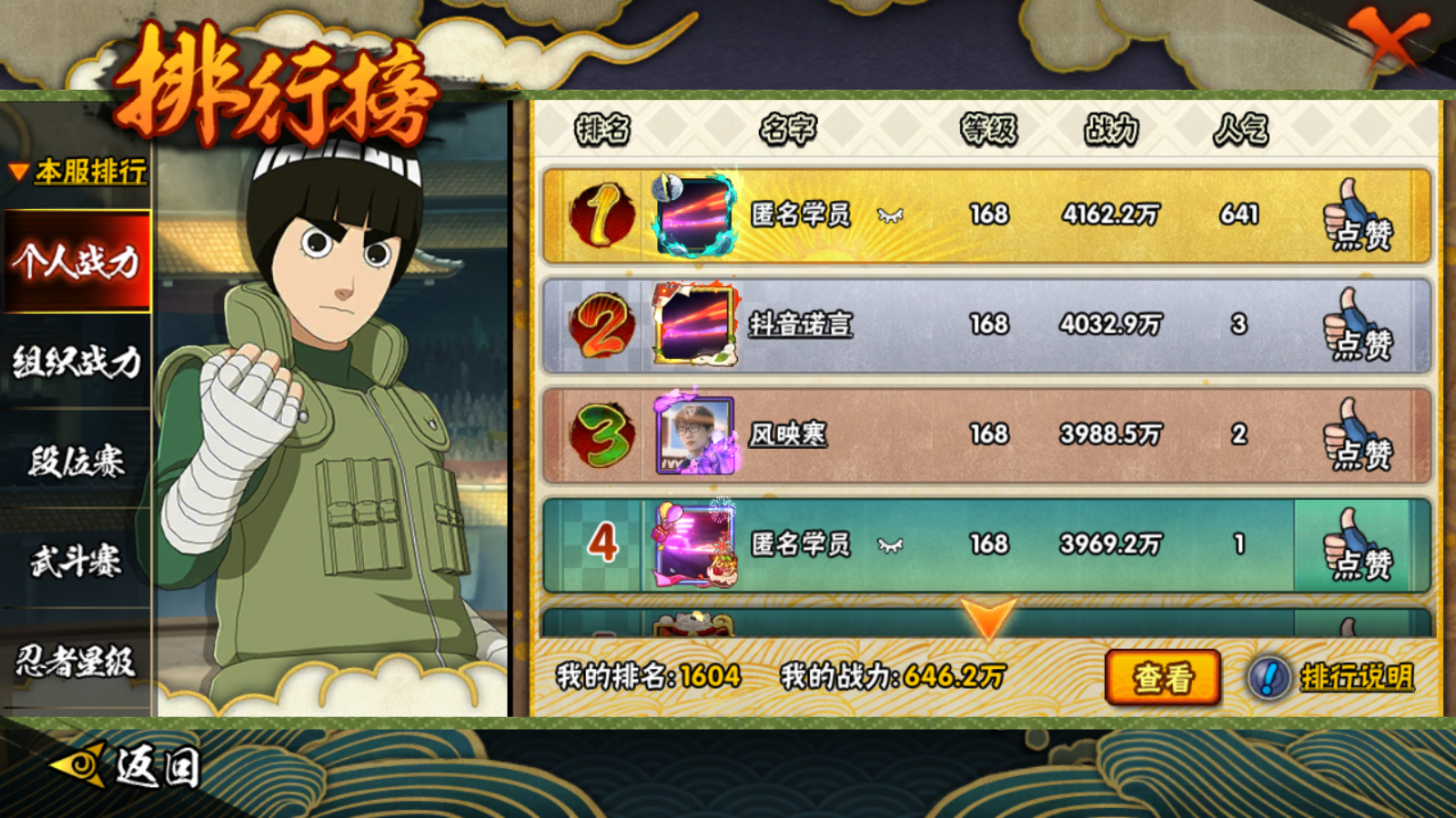 646W战力红夜黄猿/11S+4个198直购A/29A+98直购通灵熊猫+90忍战大野木碎片