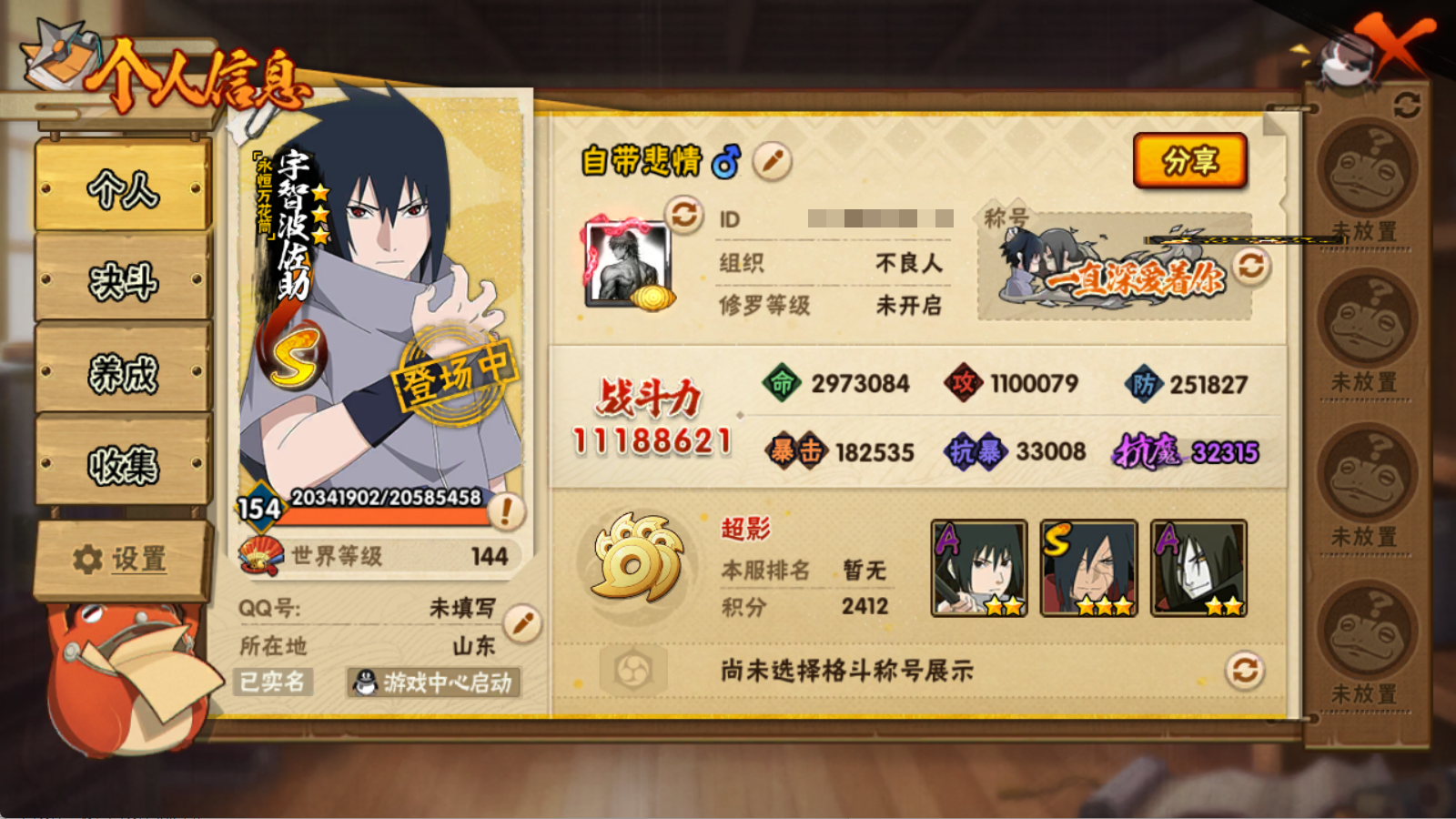 (可转苹果)1118W战力白破创斑创柱34S+298点券小孩