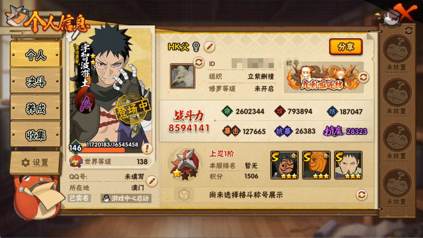 (可转苹果)859W战力破面 五影斑 红夜带土16S+黑绝 飘带6个198直购41A+85片十尾带土80片创柱