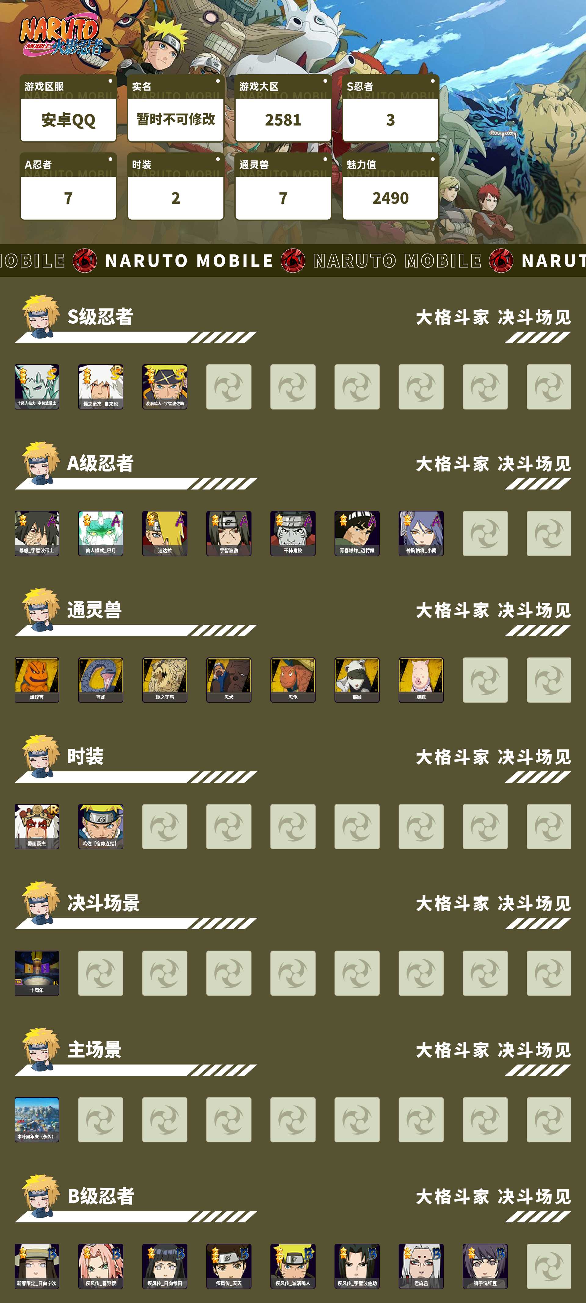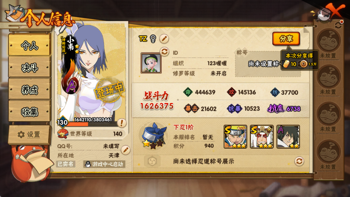 (可转苹果)160w战力六道带土s+暴怒小孩298点卷a共7