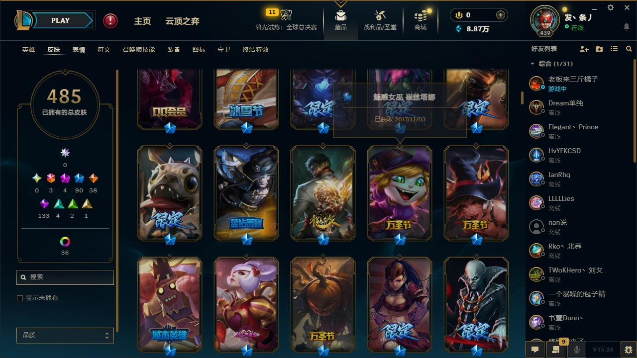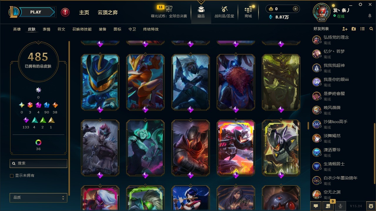 3终极 4神话 90限定 39传说 133史诗 486皮肤