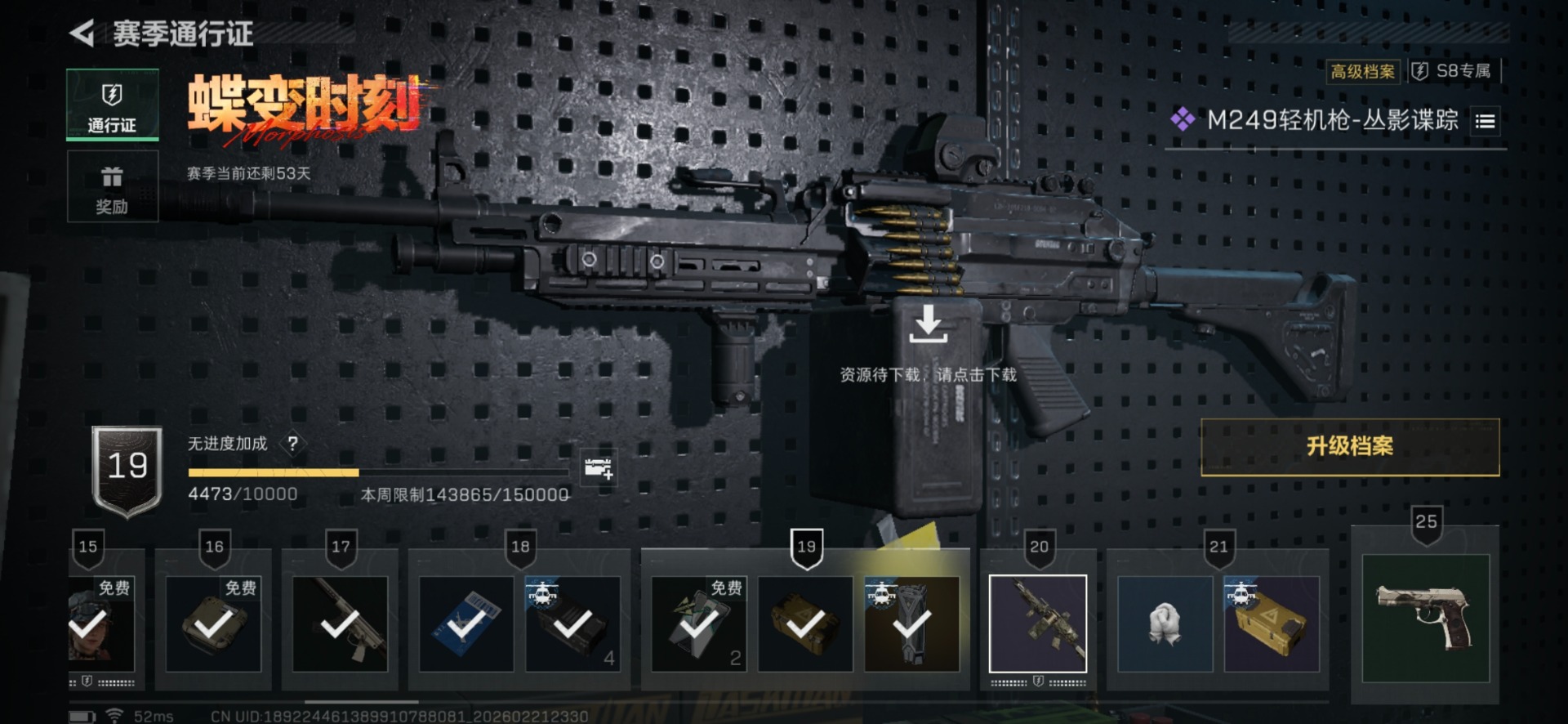 总资产:19.8M 1干员外观 1近战传说 16传说枪械