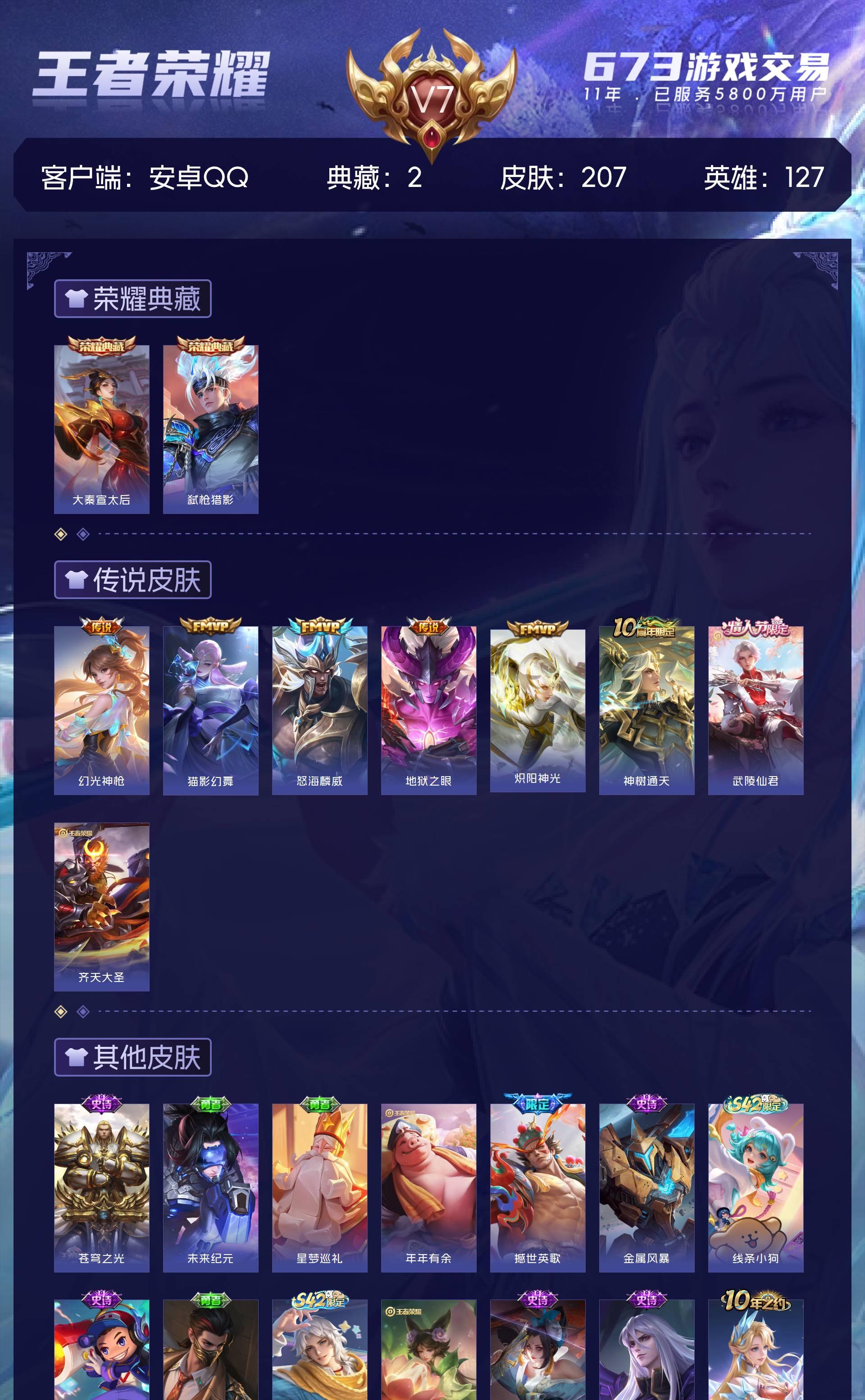 V7 皮肤207 英雄127 永恒钻石 荣耀典藏2 传说11 其他皮肤201