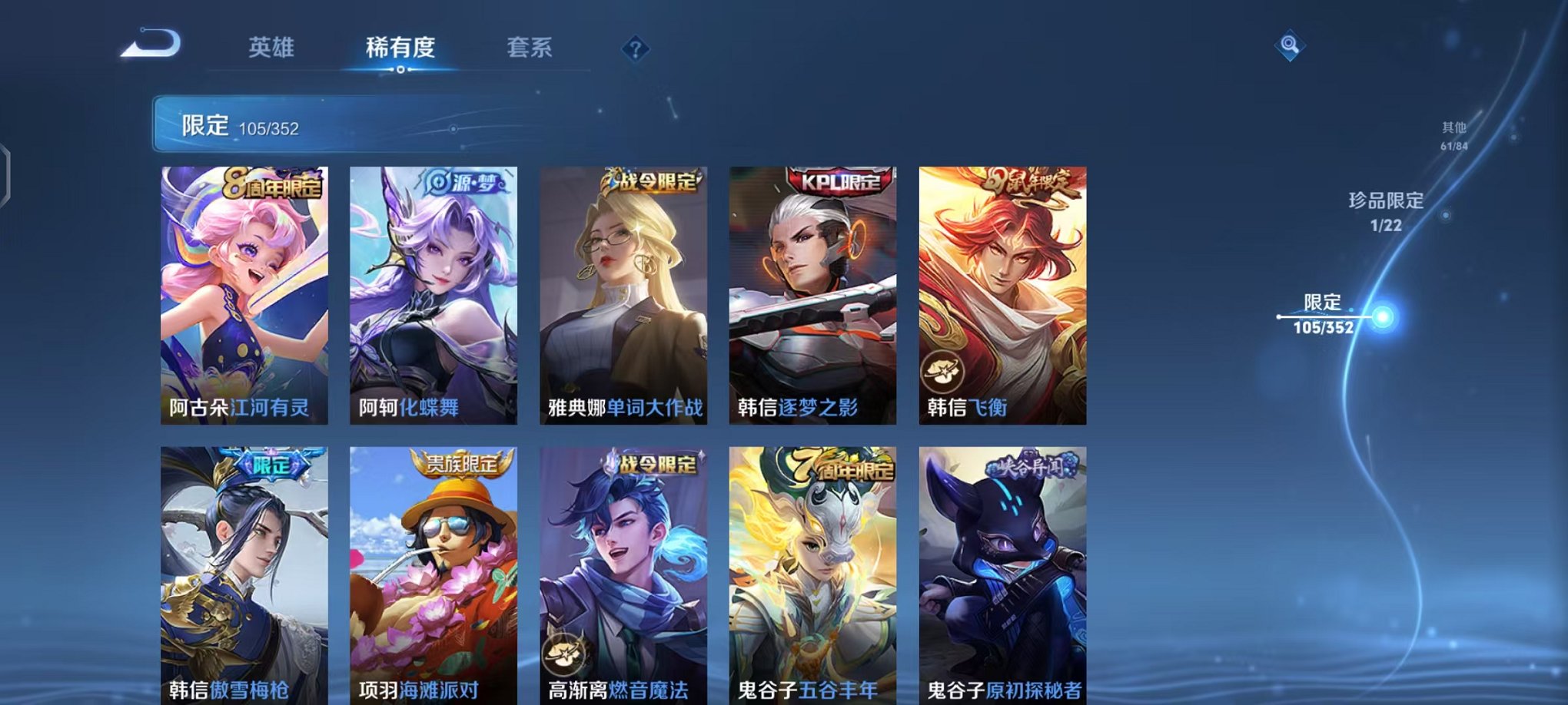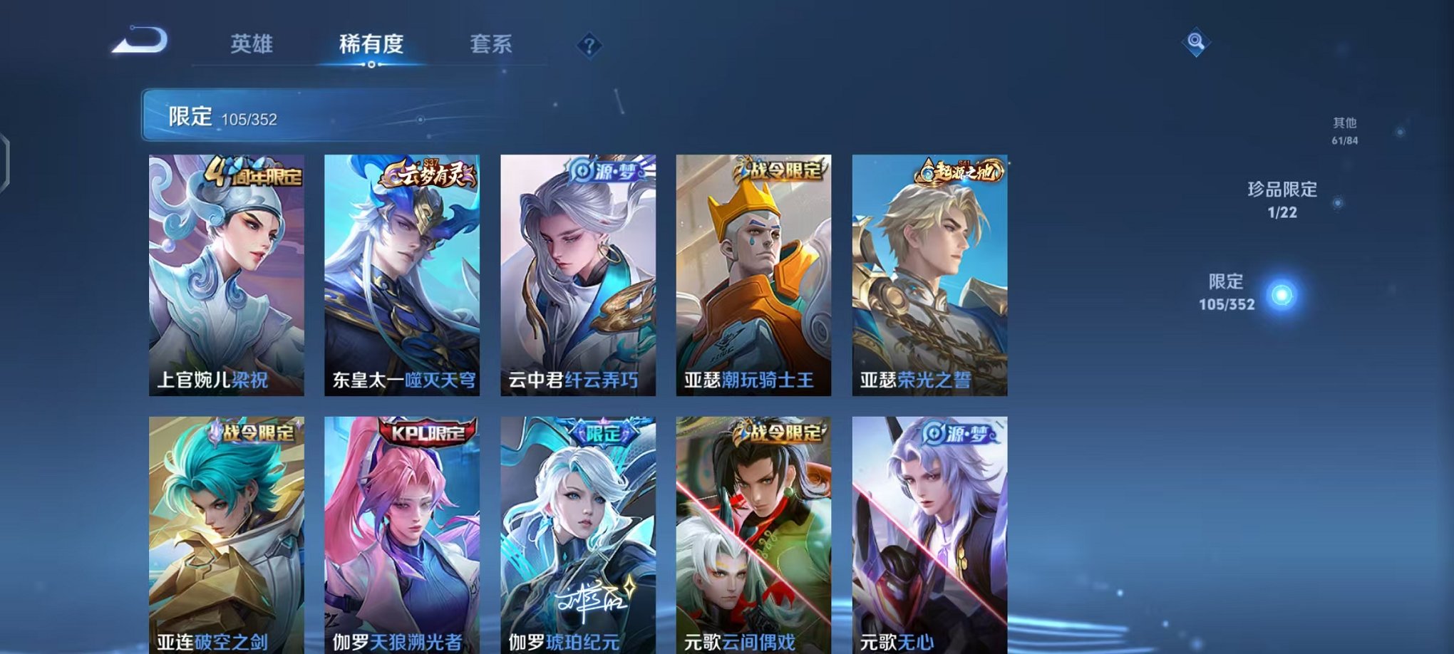 V8 322皮肤3水晶2星元1珍品9传说 -127英雄