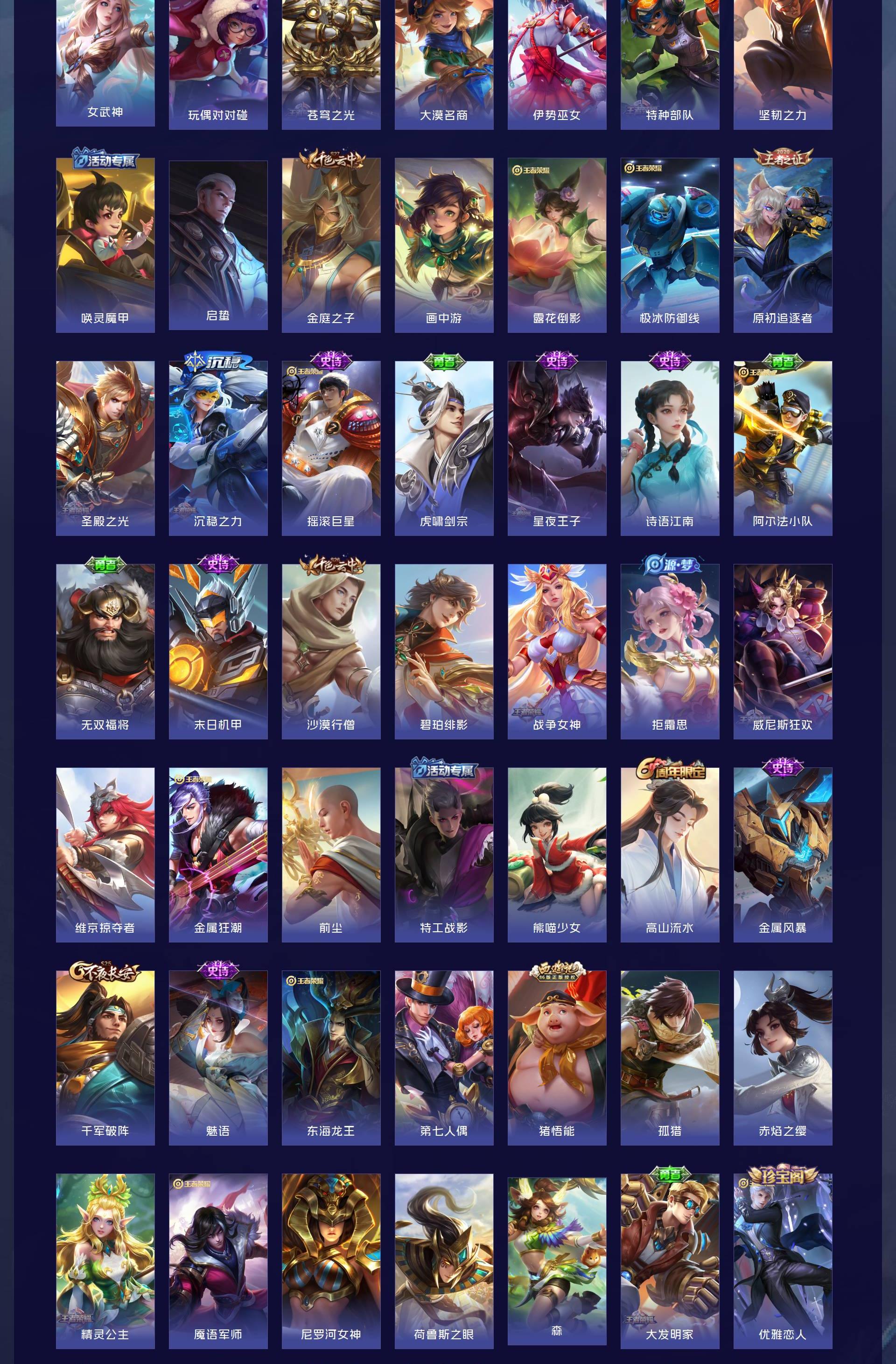 V7 皮肤340 英雄128 最强王者 荣耀典藏1 传说14 其他皮肤332