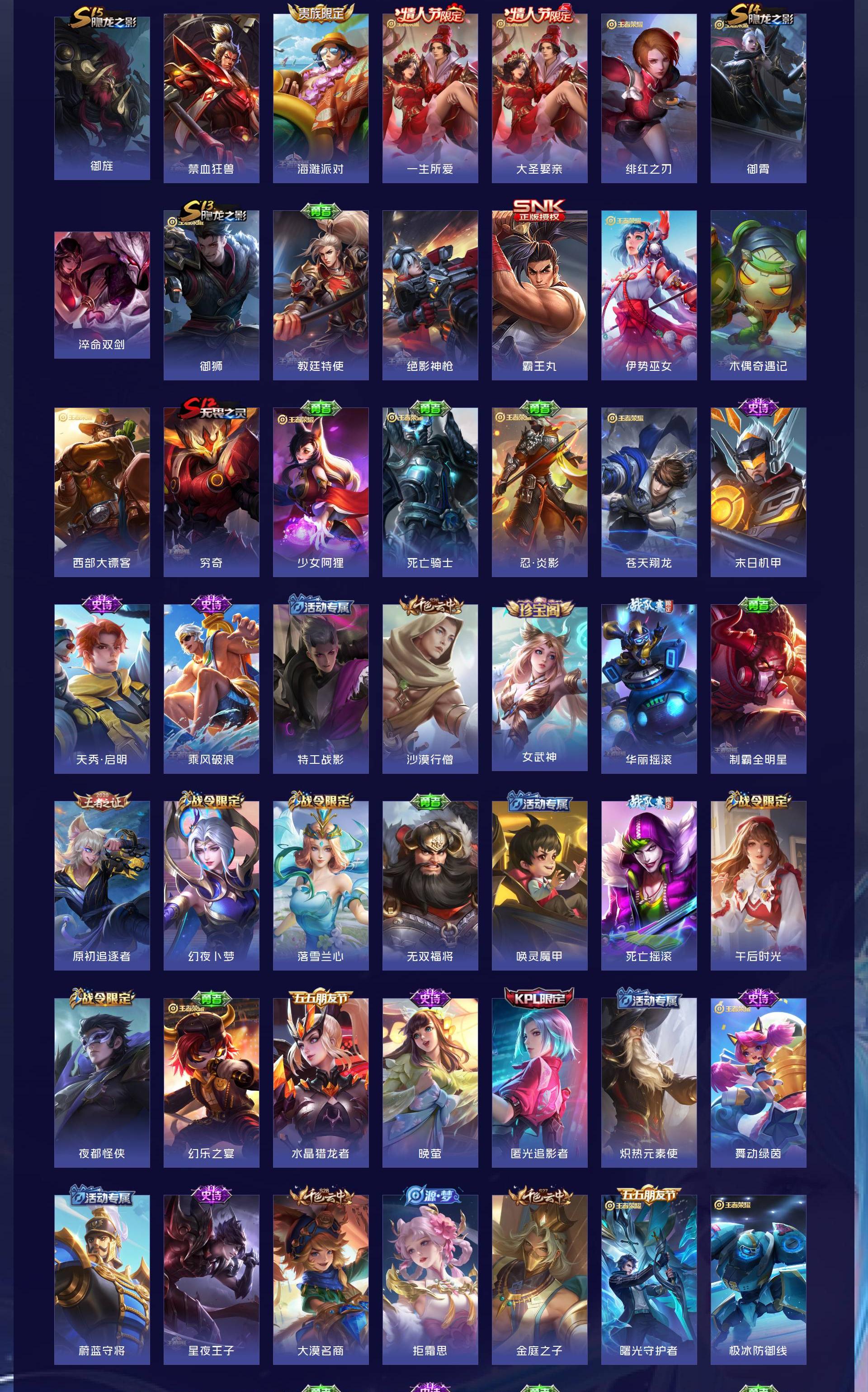 V7 皮肤337 英雄126 至尊星耀 荣耀典藏1 无双皮肤3 珍品传说1 传说24 其他皮肤315
