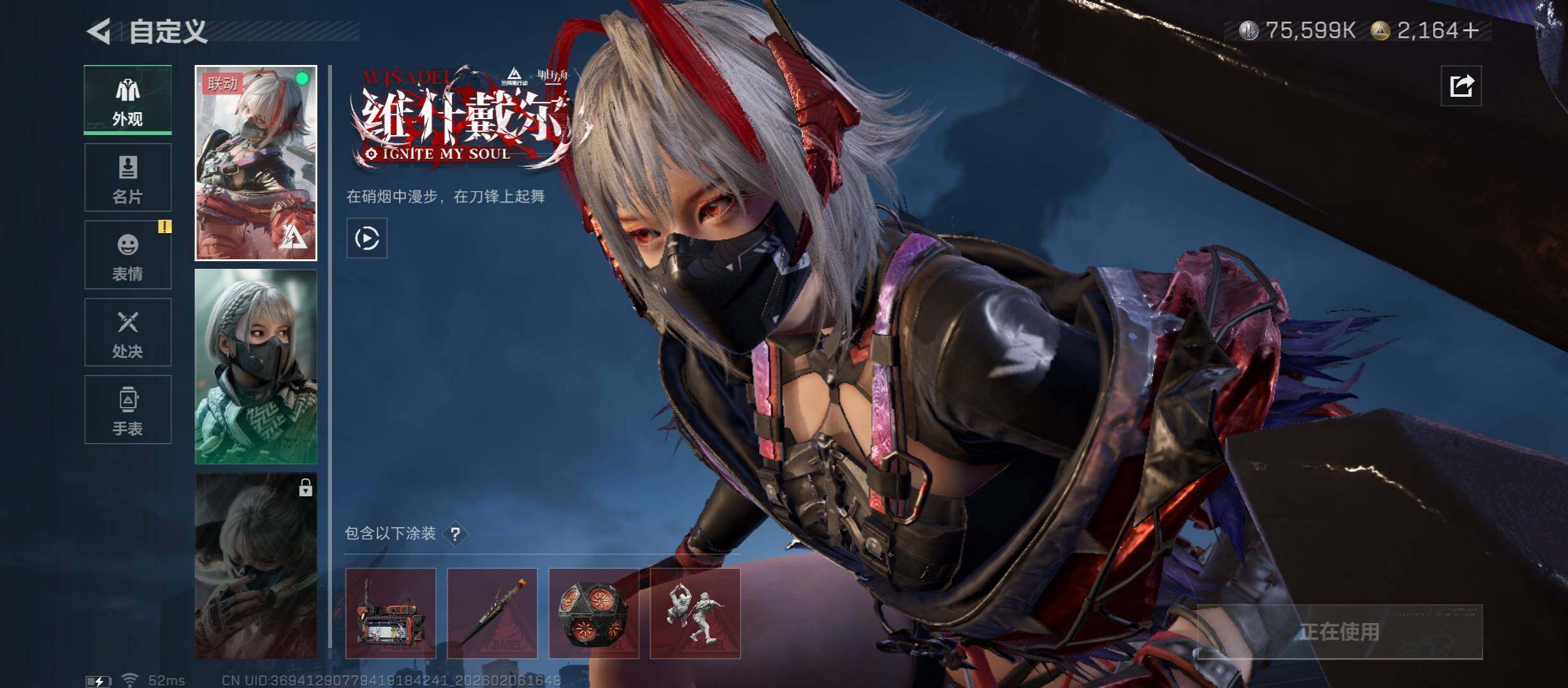 【2100三角券热门皮肤号:单红+三刀-维什戴尔+信条+怜悯+电锯.总资产184M】【Q区三端互通】【无二次】YXz7917-特勤处:仓库6级/靶场4级/训练中心6级-总资产195m-哈夫币7559w-烽火等级:60级