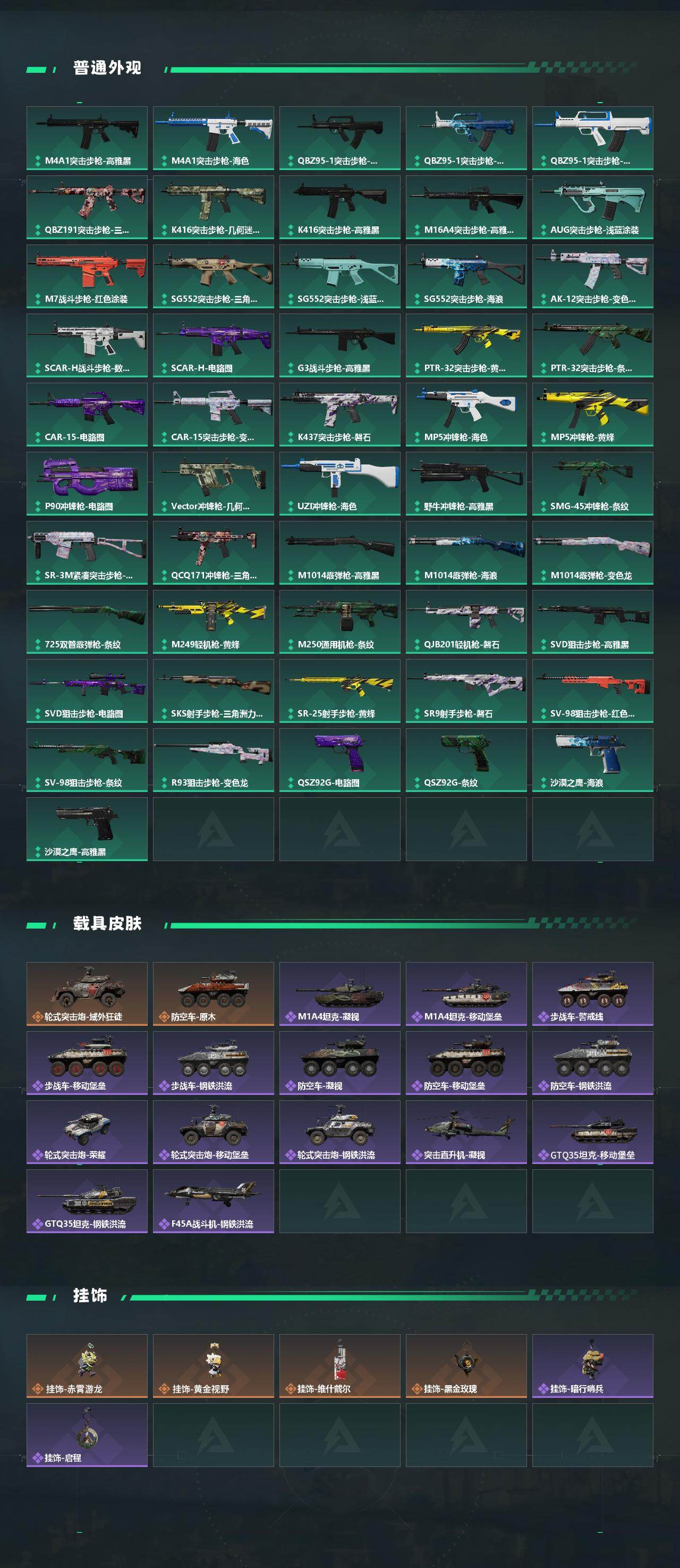【传说外观】:M4A1突击步枪-蚀金玫瑰,M4A1突击步枪-阿米娅,SG552突击步枪-运动员,SCAR-H战斗步枪-水墨云图