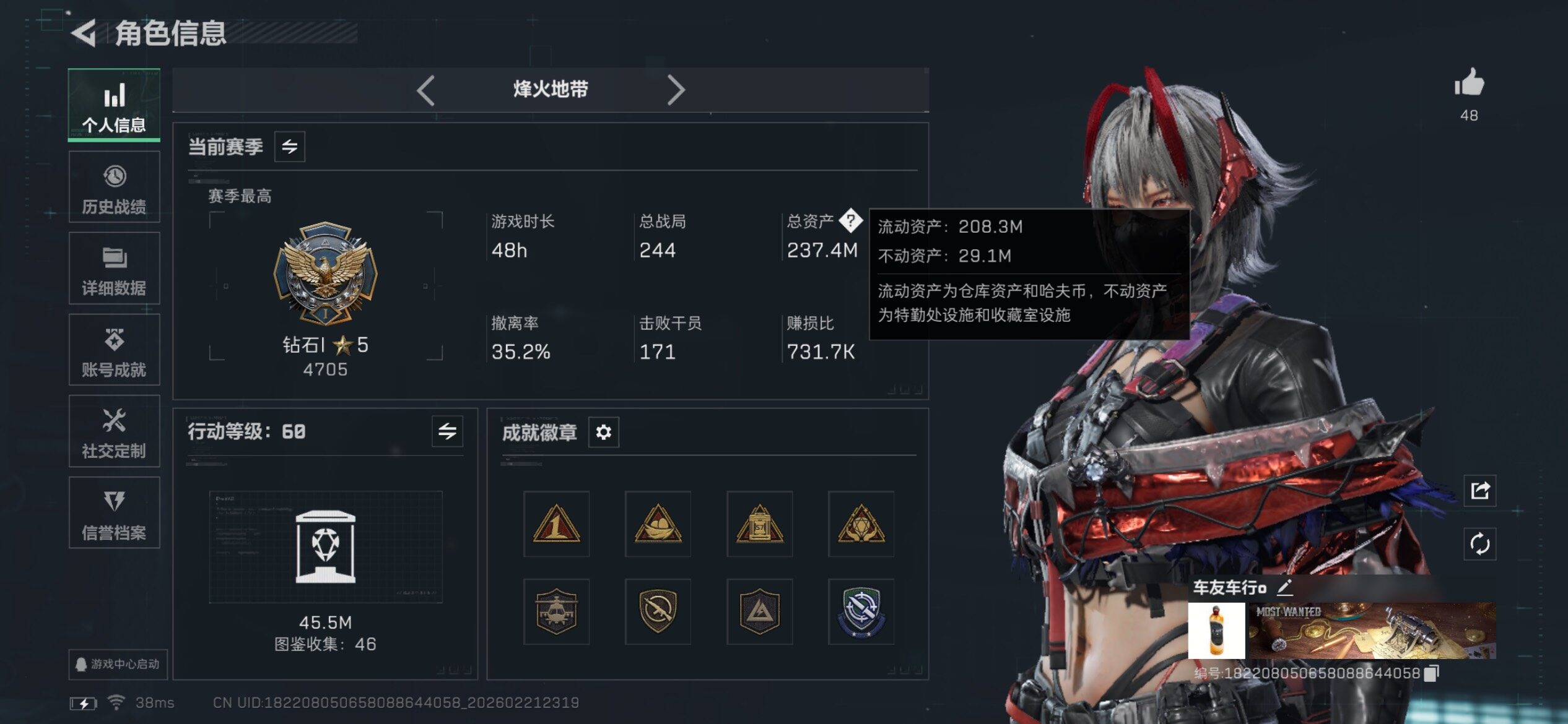 【高额资产237M-热门刀皮号-S8赛季顶级安全箱,三刀+单红-信条+怜悯+处刑者+维什戴尔】【Q区三端互通】【无二次】YXz8530-特勤处:仓库8级/靶场4级/训练中心6级-总资产237.4m-哈夫币4708w-烽火等级:60级