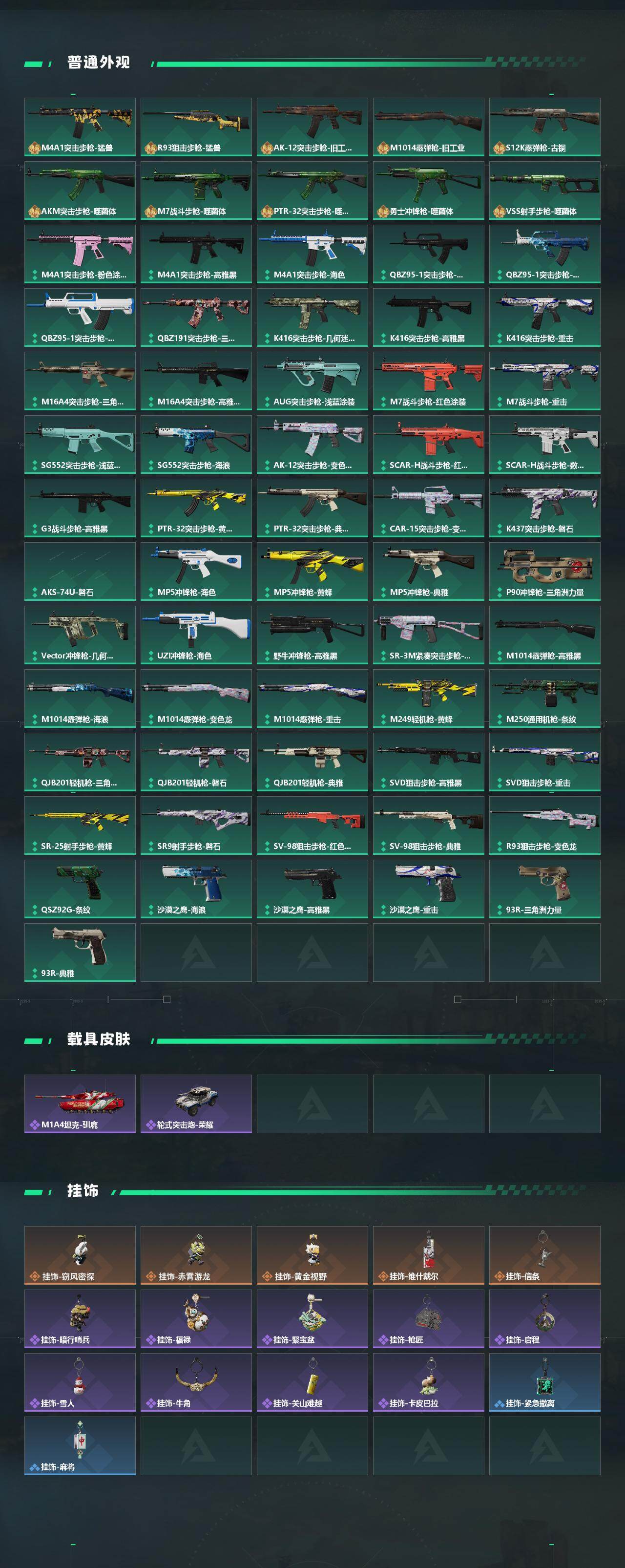 【传说外观】:M4A1突击步枪-蚀金玫瑰,M4A1突击步枪-阿米娅,SG552突击步枪-运动员,SCAR-H战斗步枪-启航,G3战斗步枪-骑