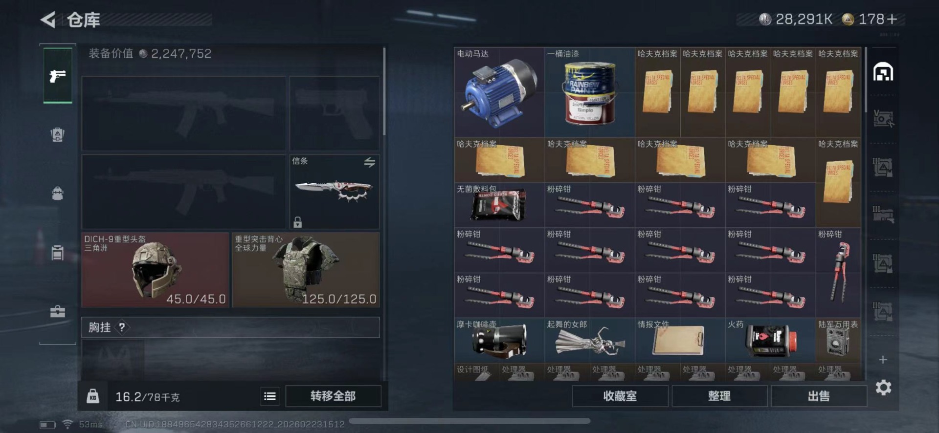 [17133301]总资产:212.1M 2干员外观 1近战传说 9传说枪械 哈夫币:28.291K 可二次 可修改实名