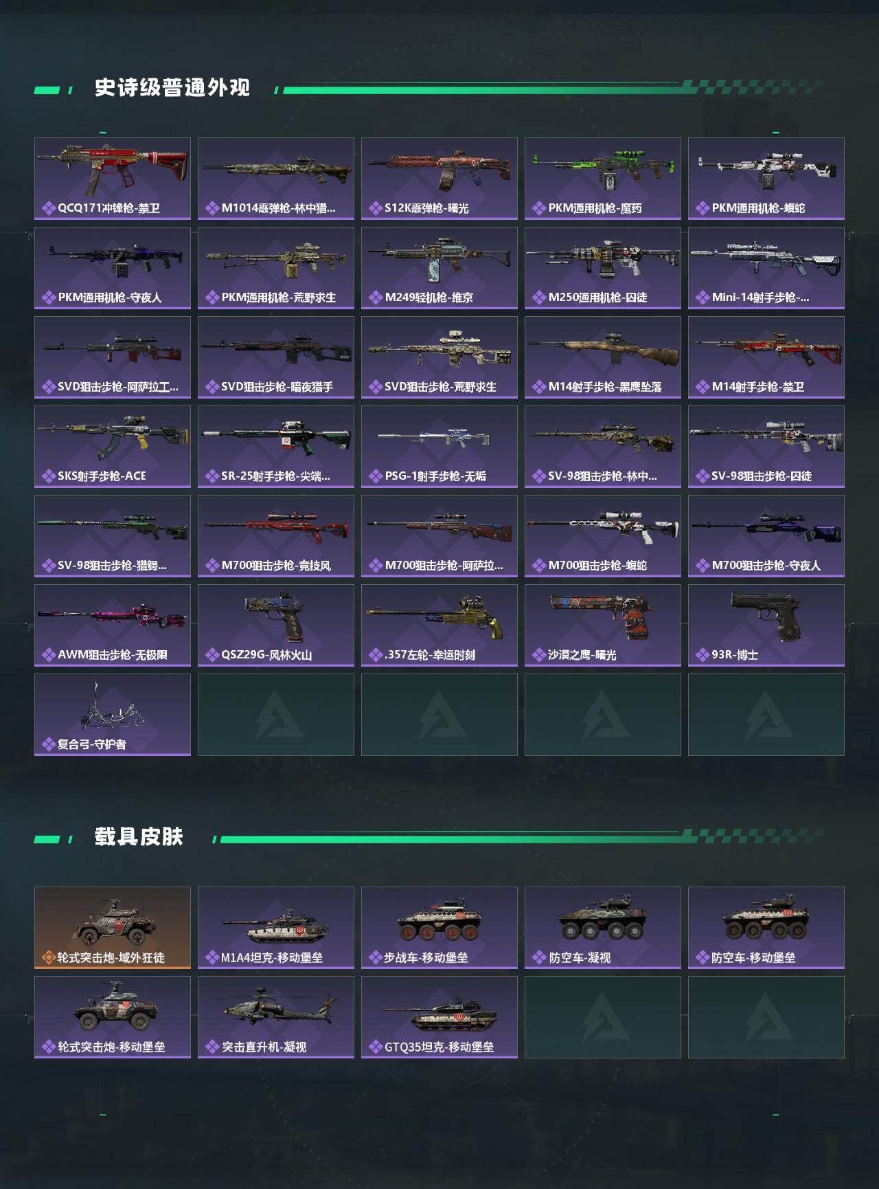 【近战皮肤】:近战-怜悯,近战-北极星,近战-黑鹰