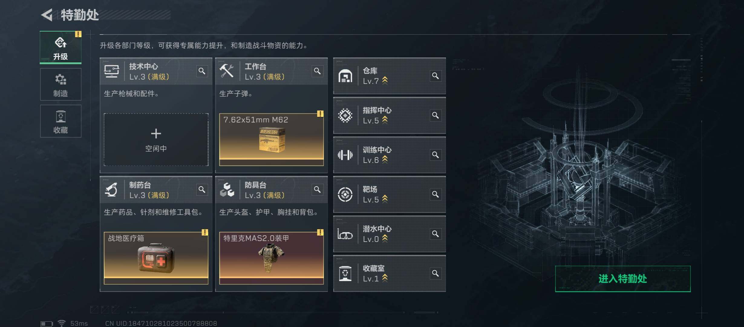 【Q区三端互通】【【无二次】YXz4114-特勤处:仓库7级/靶场5级/训练中心6级-总资产46.3m-哈夫币31w-烽火等级:60级