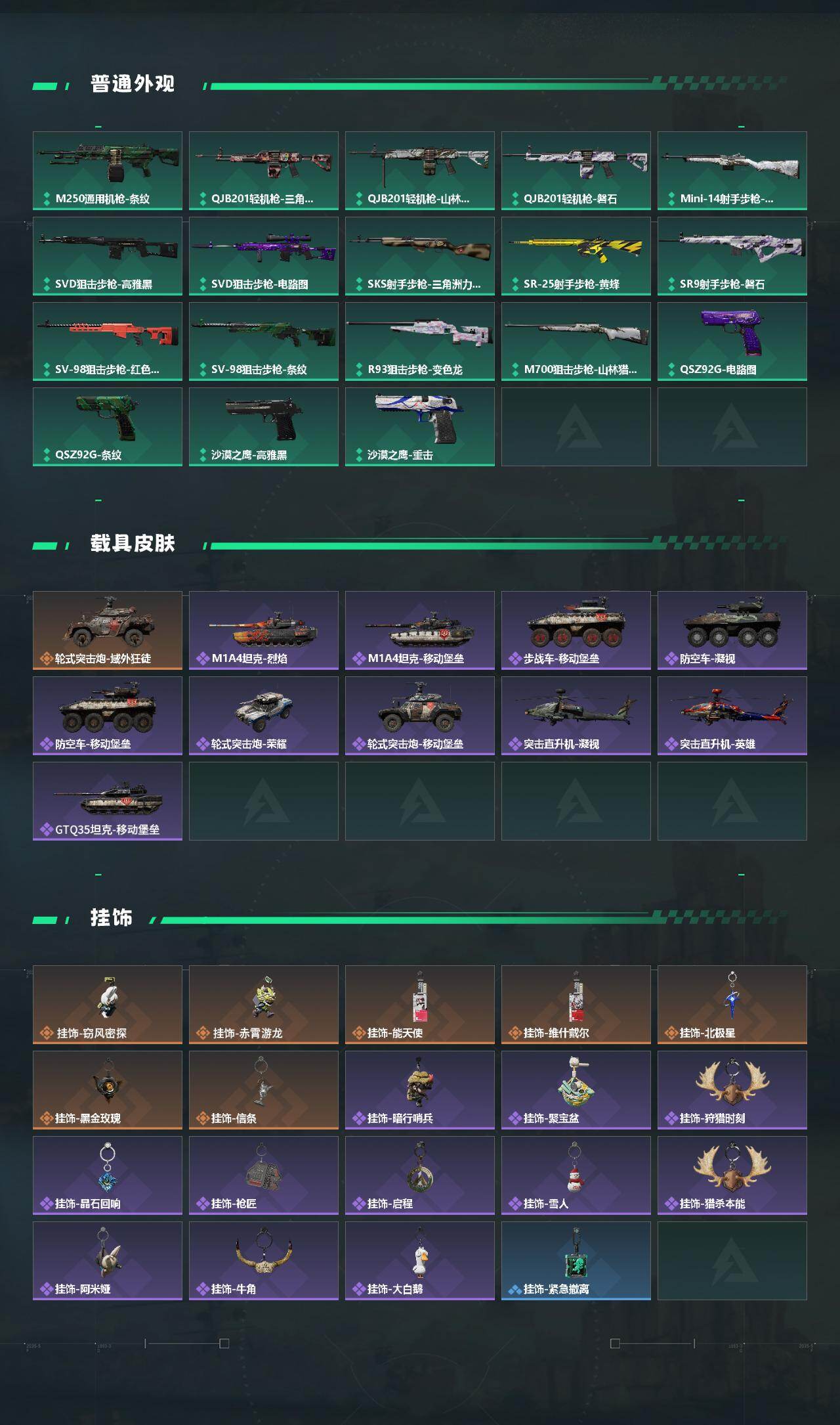【近战皮肤】:近战-北极星,近战-信条,近战-赤枭,近战-黑鹰