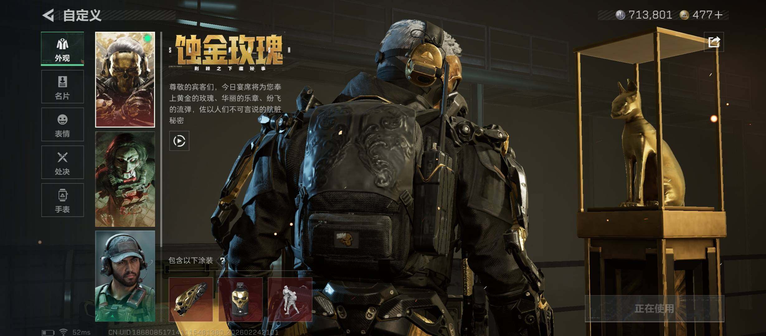 【热门皮肤号-双红+三刀-蚀金玫瑰+黑天际线+北极星+信条+影锋】【Q区三端互通】【无二次】YXz8647-特勤处:仓库8级/靶场4级/训练中心4级-总资产219.7m-哈夫币71w-烽火等级:60级