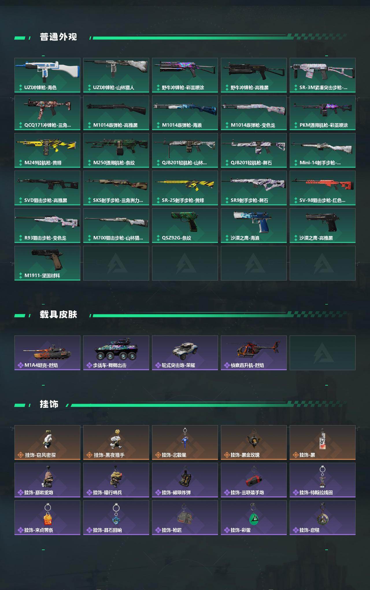 【近战皮肤】:近战-怜悯,近战-影锋,近战-北极星,近战-黑鹰