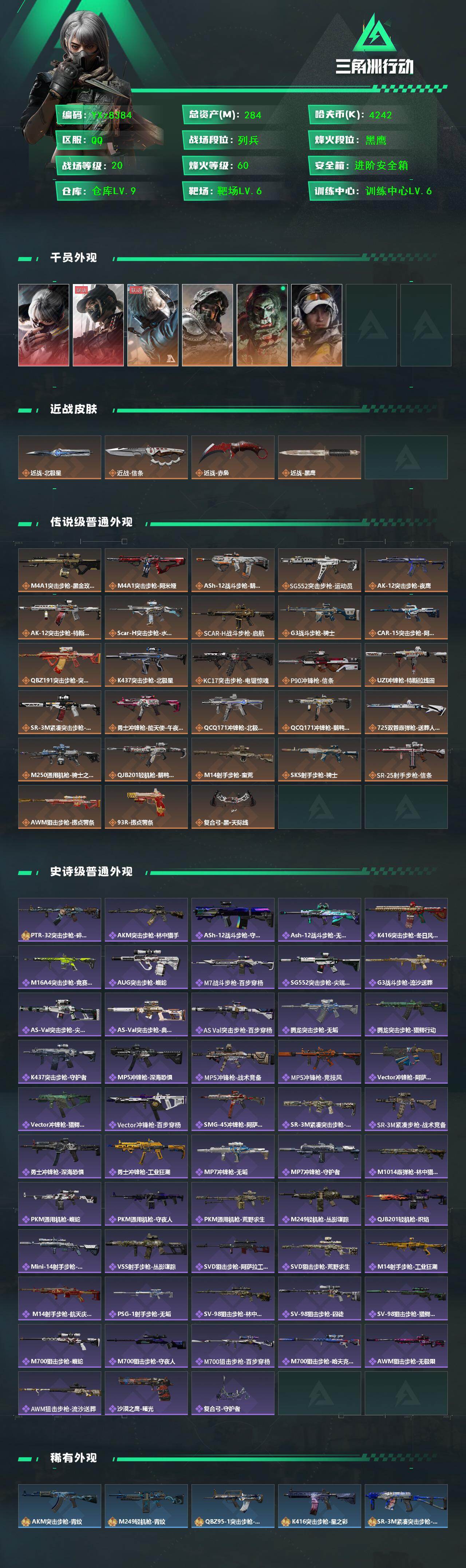 【高氪金土豪号-二红+三刀/高额资产284M】【红狼蚀金差一发】【Q区三端互通】【可二次】YXz8384-特勤处:仓库9级/靶场6级/训练中心6级-总资产284m-哈夫币424w-烽火等级:60级