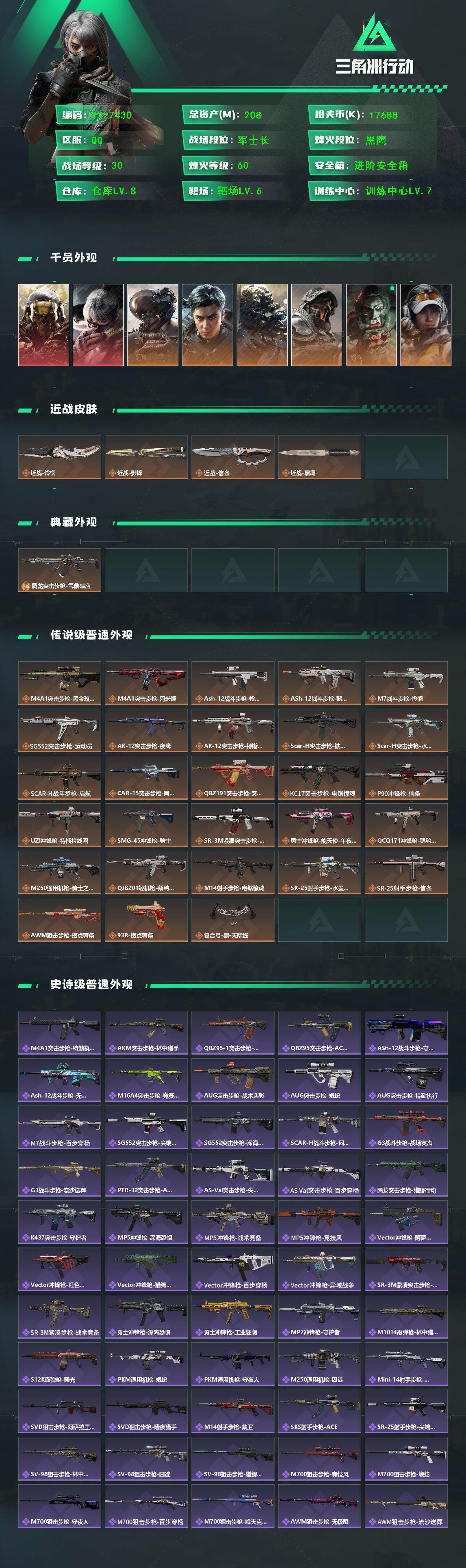 【高氪金土豪号-单红皮+三刀皮+一典藏皮肤+飞虎】【怜悯+影锋+信条+蚀金玫瑰】【典藏外观】:腾龙突击步枪-气象感应-优品b【Q区三端互通】【无二次】YXz7430-特勤处:仓库8级/靶场6级/训练中心7级-总资产208.4m-哈夫币1768w-烽火等级:60级