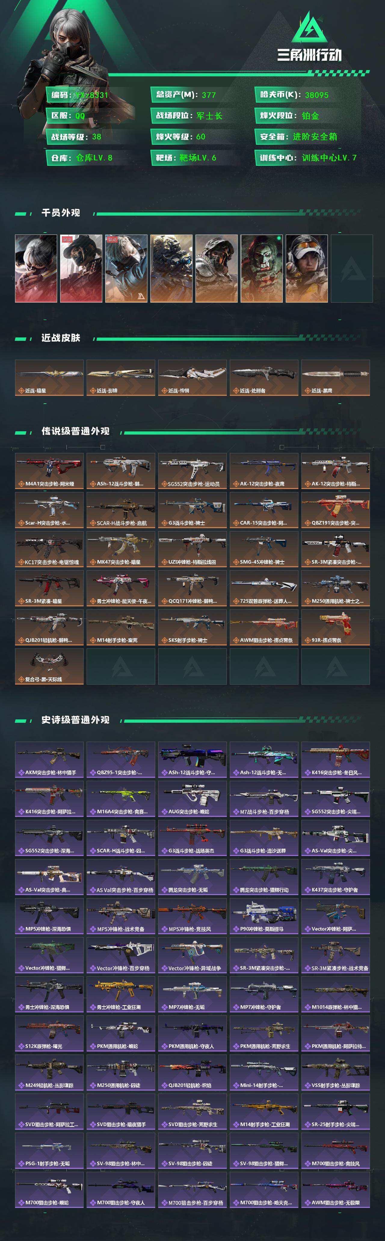 【高氪金土豪号-二红皮+四刀皮-资产337】【影锋.怜悯.暗星.处刑者.水墨云图.黑天际线】【Q区三端互通】【无二次】YXz8331-特勤处:仓库8级/靶场6级/训练中心7级-总资产377m-哈夫币3809w-烽火等级:60级