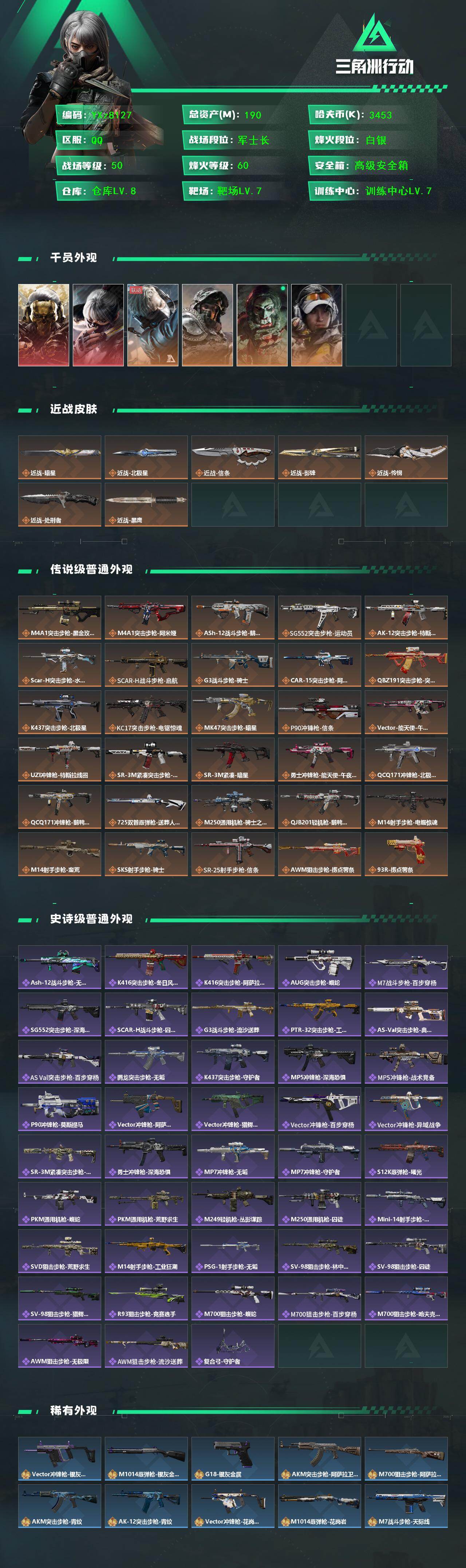 【高氪金土豪号-双红皮+六刀皮.总资产190M】【暗星.北极星.信条.影锋.怜悯.处刑者.蚀金玫瑰.水墨云图】【Q区三端互通】【无二次】YXz8127-特勤处:仓库8级/靶场7级/训练中心7级-总资产190.6m-哈夫币345w-烽火等级:60级