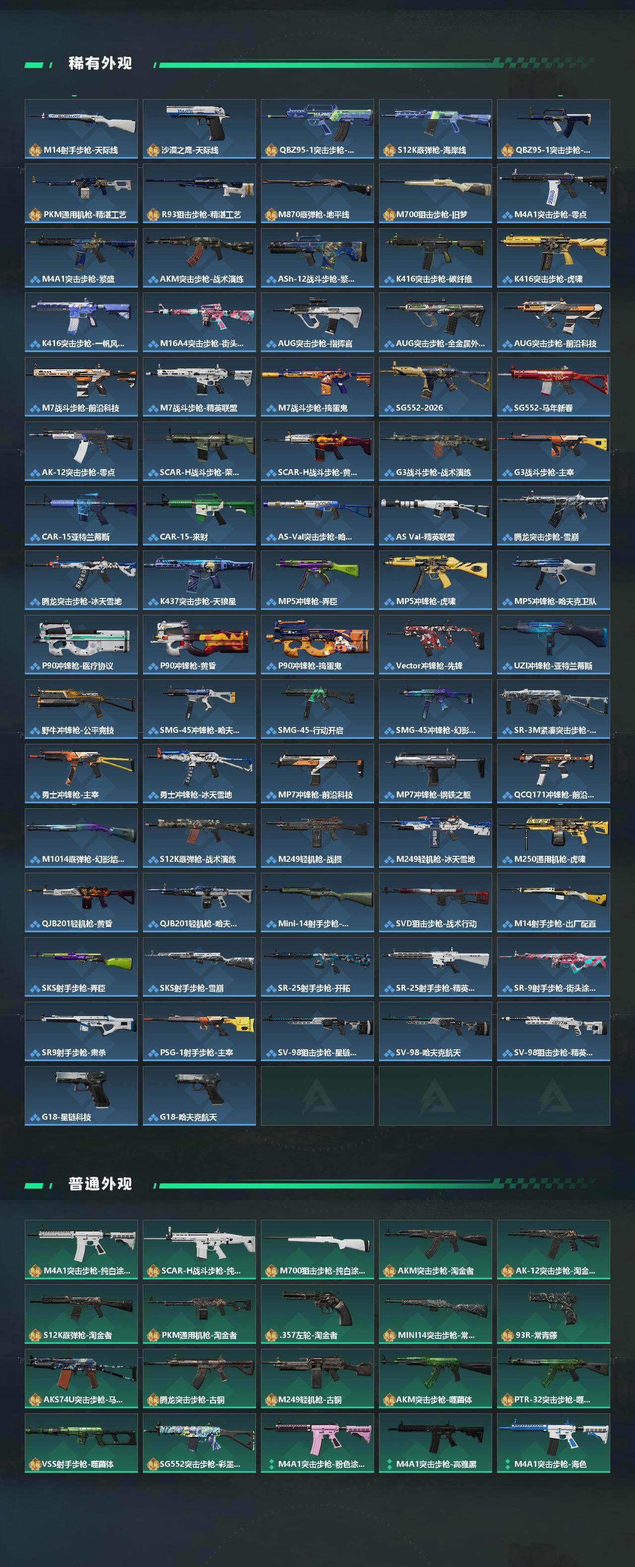 【近战皮肤】:近战-暗星,近战-北极星,近战-信条,近战-影锋,近战-怜悯,近战-处刑者,近战-黑鹰