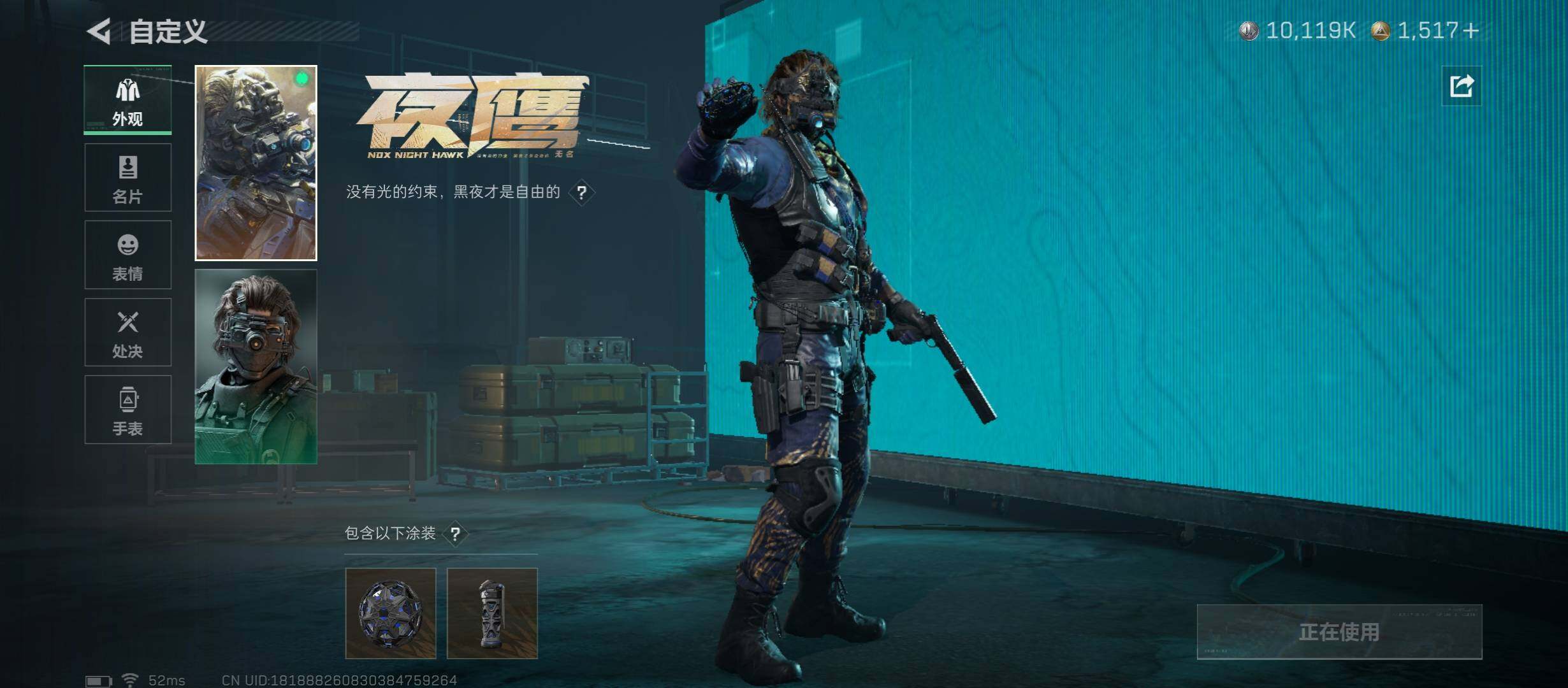 【干员外观】:红狼-蚀金玫瑰,露娜-黑·天际线,威龙-铁面判官,威龙-壮志凌云,威龙-蛟龙特战队,蜂医-送葬人·无题密令,牧羊人-街头之王,无名-夜鹰,深蓝-不破誓约,红狼-电锯惊魂